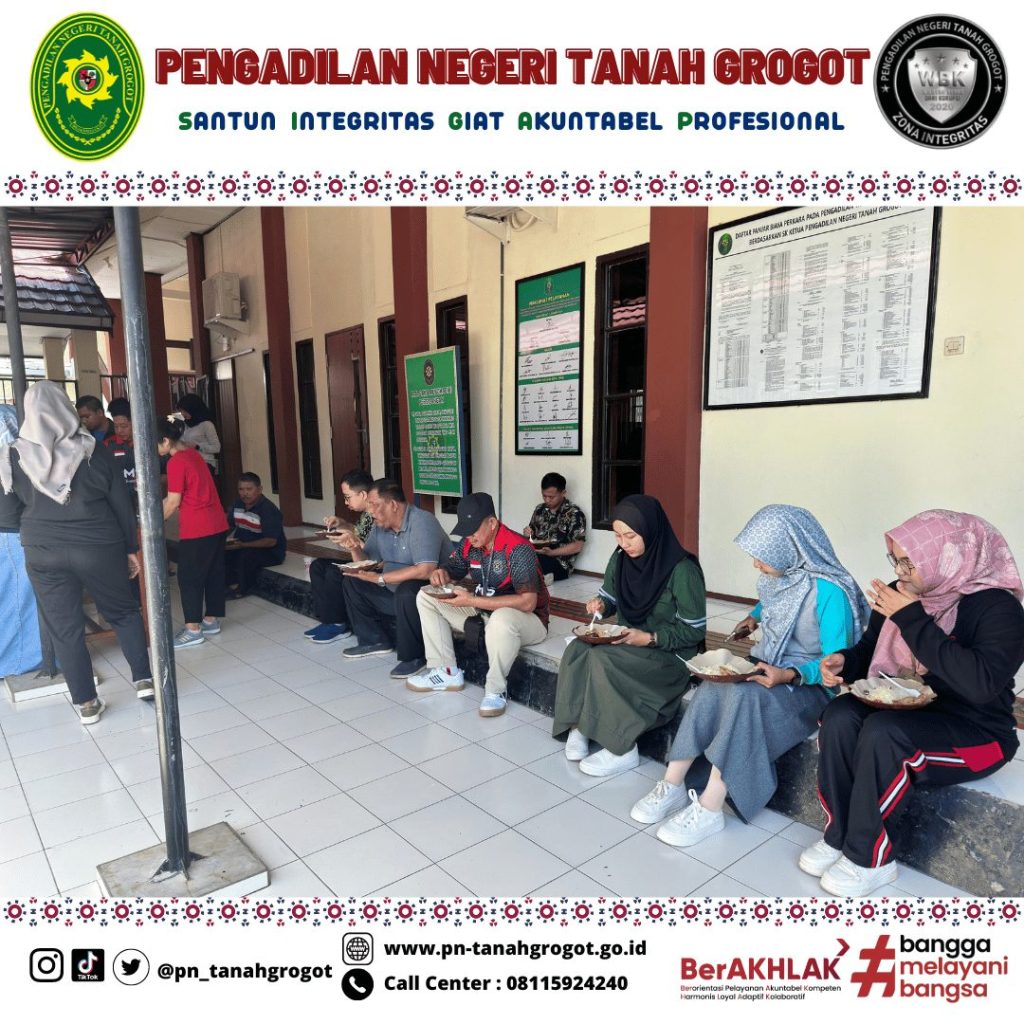 Sebagai bentuk kebersamaan Keluarga Besar Pengadilan Negeri Tanah Grogot mengadakan acara makan bersama. Acara makan bersama ini dilakukan di samping Ruang Sidang Utama Pengadilan Negeri Tanah Grogot. Kegiatan makan bersama ini bertujuan untuk merekatkan kebersamaan pegawai dan juga sebagai relaksasi setelah melaksanakan kerja keras. Kemudian kegiatan berlanjut ke perlombaan tenis meja yang merupakan acara lanjutan dalam rangka merayakan Hari Kemerdakaan Republik Indonesia ke-79 dan HUT Mahkamah Agung RI ke-79.