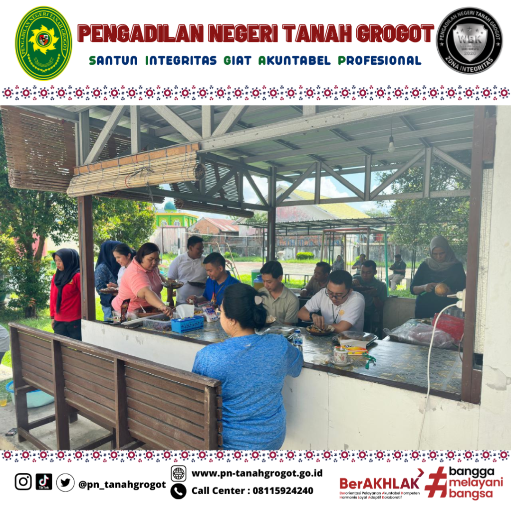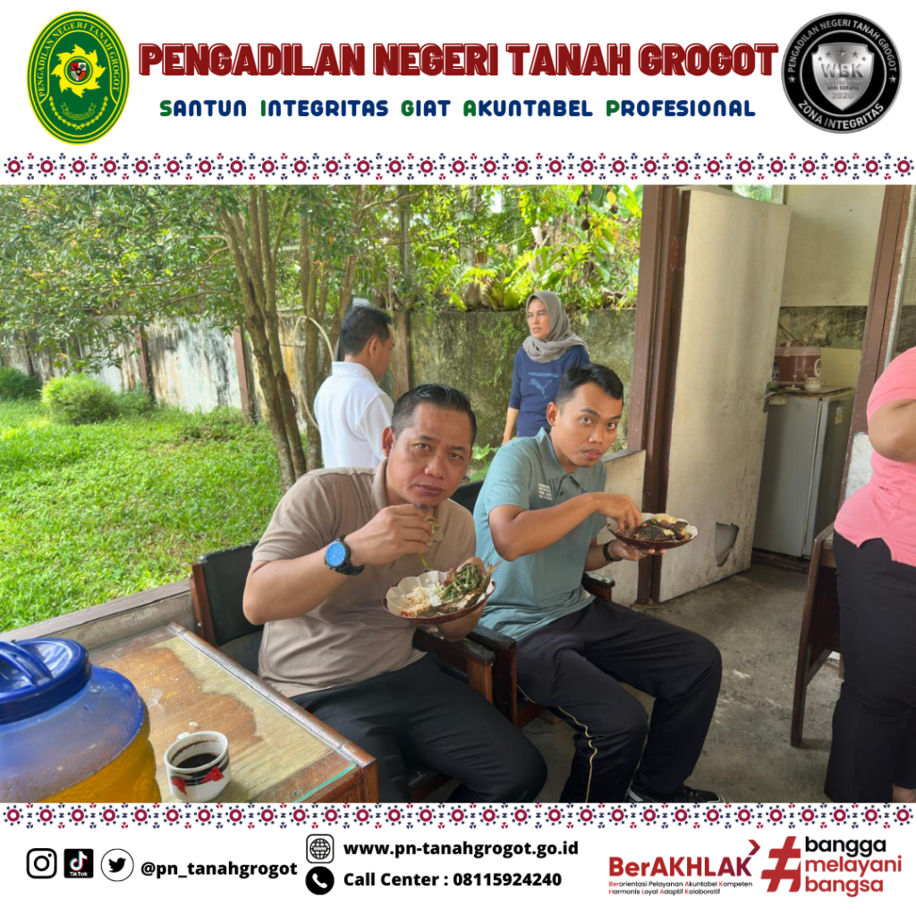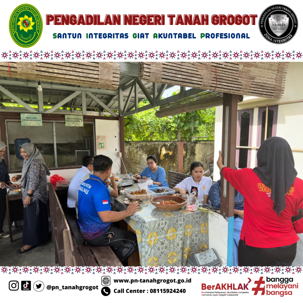 Sebagai bentuk kebersamaan Keluarga Besar Pengadilan Negeri Tanah Grogot mengadakan acara makan bersama. Acara makan bersama ini dilakukan di Halaman Belakang Pengadilan Negeri Tanah Grogot. Kegiatan makan bersama ini bertujuan untuk merekatkan kebersamaan pegawai dan juga sebagai relaksasi setelah melaksanakan kerja keras.