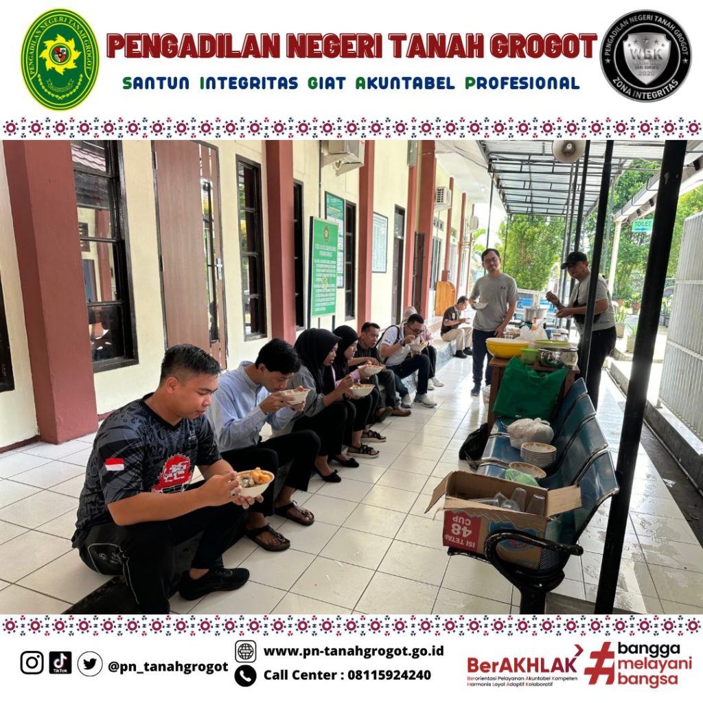 Sebagai bentuk kebersamaan Keluarga Besar Pengadilan Negeri Tanah Grogot mengadakan acara makan bersama. Acara makan bersama ini dilakukan di samping Ruang Sidang Utama Pengadilan Negeri Tanah Grogot. Kegiatan makan bersama ini bertujuan untuk merekatkan kebersamaan pegawai dan juga sebagai relaksasi setelah melaksanakan kerja keras.
