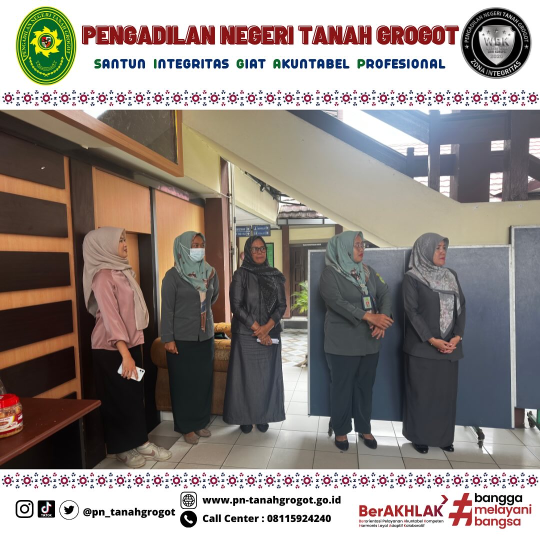 Bertempat di aula Pengadilan Negeri Tanah Grogot telah diadakan acara syukuran dalam rangka menyambut awal tahun 2024. Acara syukuran dibuka dengan doa oleh Kasubbag Umum dan Keuangan Pengadilan Negeri Tanah Grogot, Bapak Muhyidin, S.H. Acara kemudian dilanjutkan dengan pemotongan tumpeng oleh Ketua Pengadilan Negeri Tanah Grogot, Ibu Ari Listyawati, S.H., M.H.