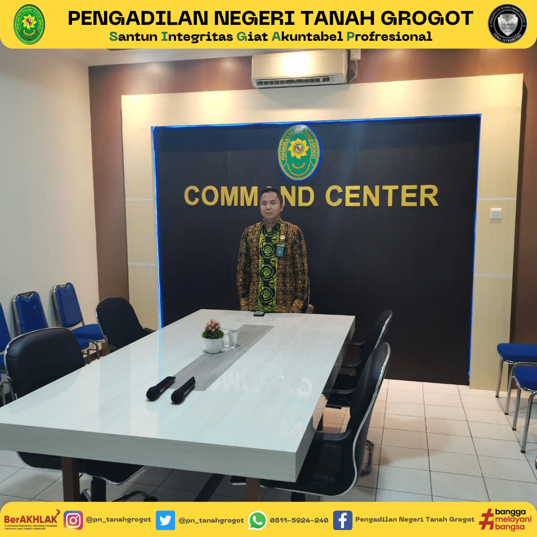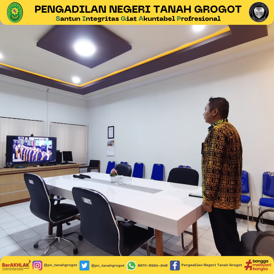 Bertempat di Ruang Command Center Pengadilan Negeri Tanah Grogot, Ketua Pengadilan Negeri Tanah Grogot Bapak Made Adicandra Purnawan, S.H. mengikuti acara Wisuda Purnabhakti Para Pimpinan, Hakim Agung dan Hakim Adhoc Mahkamah Agung oleh Yang Mulia Ketua Mahkamah Agung RI secara daring/virtual dengan menggunakan zoom meeting.