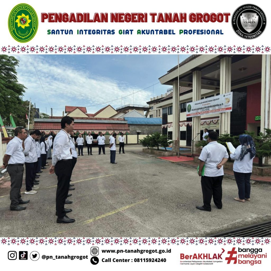 Tepat pukul 08.00 Wita pada hari Senin tanggal 26 Agustus 2024 pukul bertempat di halaman kantor Pengadilan Negeri Tanah Grogot dilaksanakan kegiatan apel pagi.