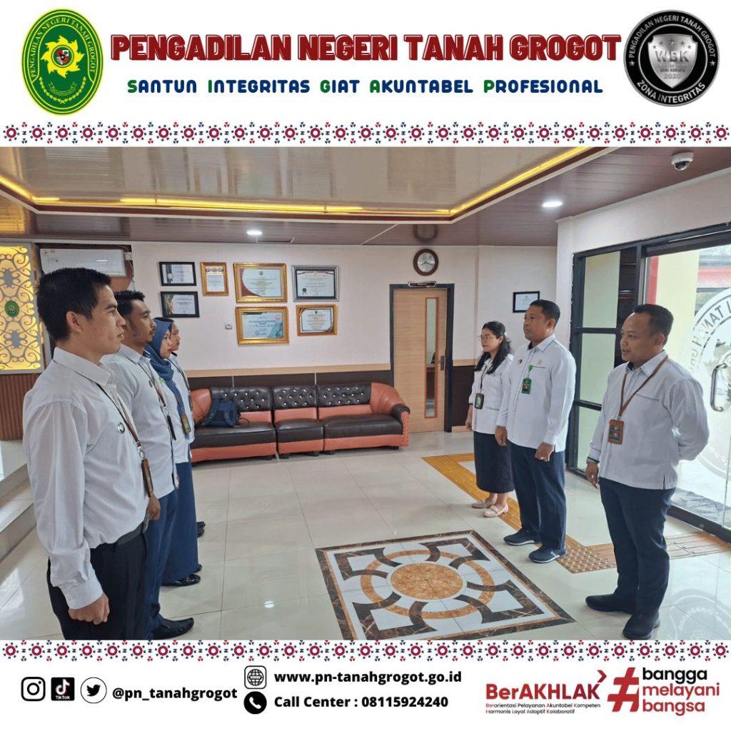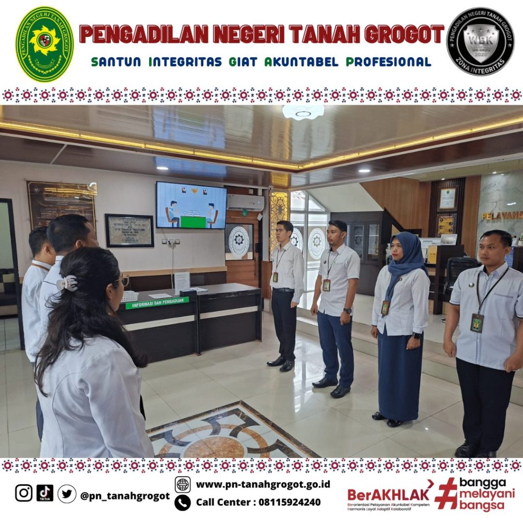 Pada hari Senin tanggal 6 Oktober 2025 pukul 08.15 WITA bertempat di Ruang Pelayanan Terpadu Satu Pintu (PTSP) Pengadilan Negeri Tanah Grogot diadakan briefing rutin kepada Petugas PTSP yang dipimpin oleh Bpk. Andi Hardiansyah, S.H., M.Hum. (Wakil Ketua), Ibu Catty Ratnasari Sitorus, S.H. (Hakim Pengawas PTSP) dan Bpk. Randy Mochammad Avis, S.H. (Panitera) yang dalam kesempatan briefing tersebut disampaikan kepada para petugas PTSP agar Petugas PTSP senantiasa menerapkan 5R dan 5S dalam memberikan pelayanan, senantiasa menjaga kekompakan dan koordinasi jika ditemui kendala dalam memberikan pelayanan, melaksanakan pelayanan sesuai dengan SOP dan ketentuan yang berlaku dan jangan lupa untuk selalu mengingatkan pengunjung yang datang untuk mengisi survei pelayanan yang ada di PTSP.