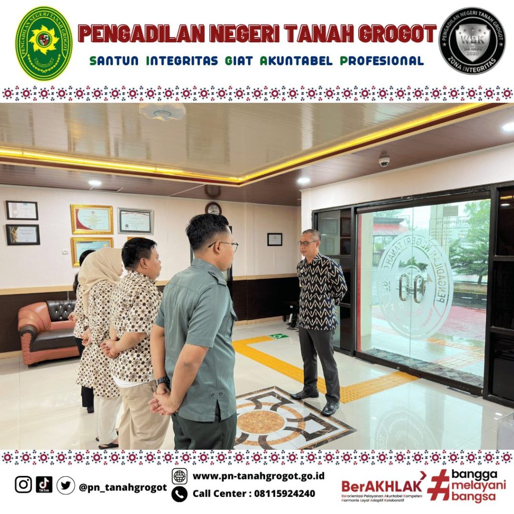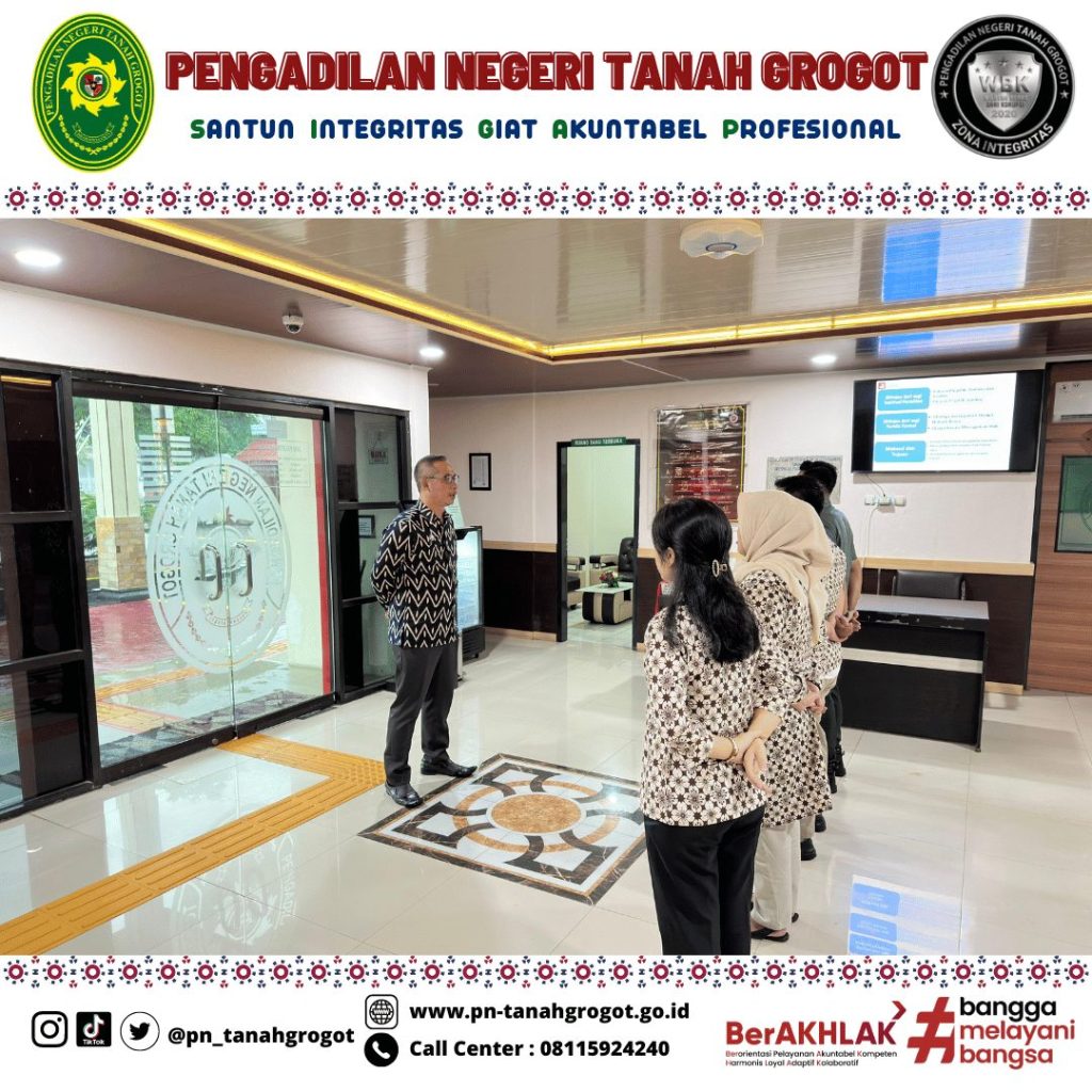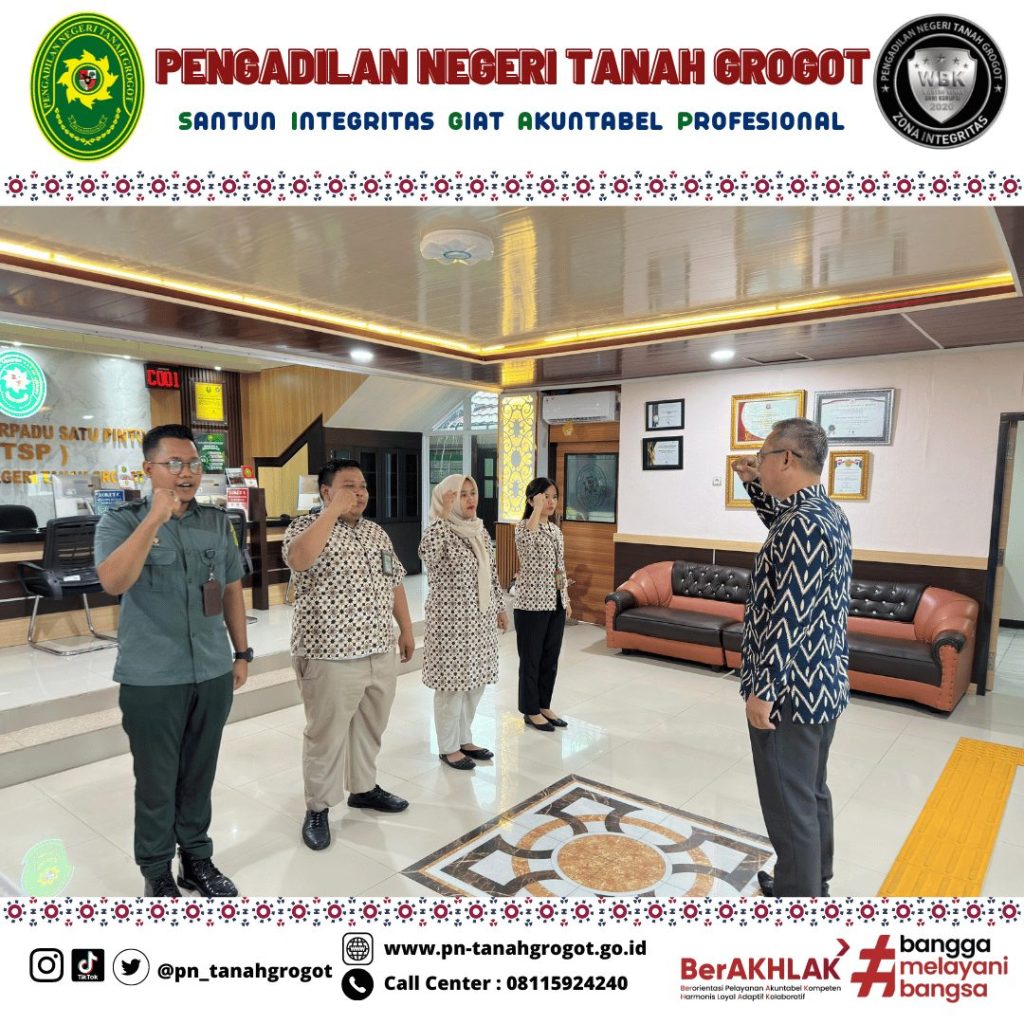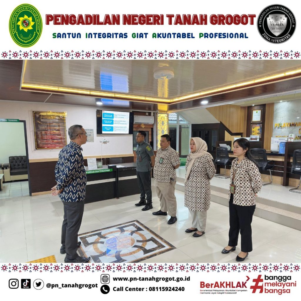 Pada hari Jum’at tanggal 9 Mei 2025 pukul 07.30 WITA bertempat di Ruang Pelayanan Terpadu Satu Pintu (PTSP) Pengadilan Negeri Tanah Grogot diadakan briefing rutin kepada Petugas PTSP yang dipimpin oleh Bpk. Muhyidin, S.H. (Kasubag Umum dan Keuangan) Pengadilan Negeri Tanah Grogot. Briefing dilakukan agar Petugas PTSP selalu dapat memberikan pelayanan yang prima kepada masyarakat pencari keadilan dengan berpedoman kepada SOP yang ada.