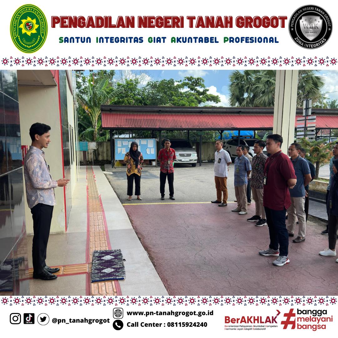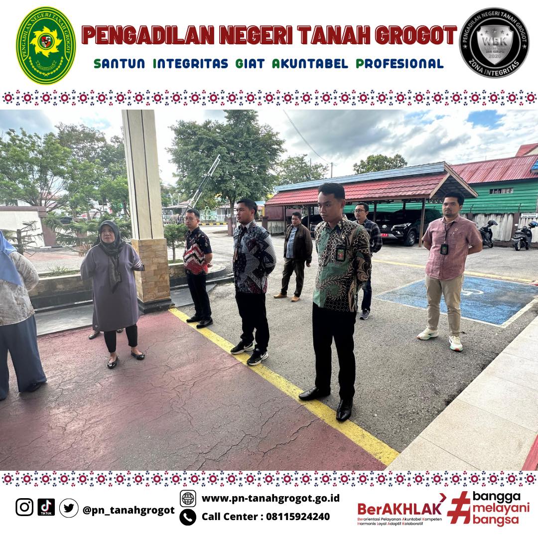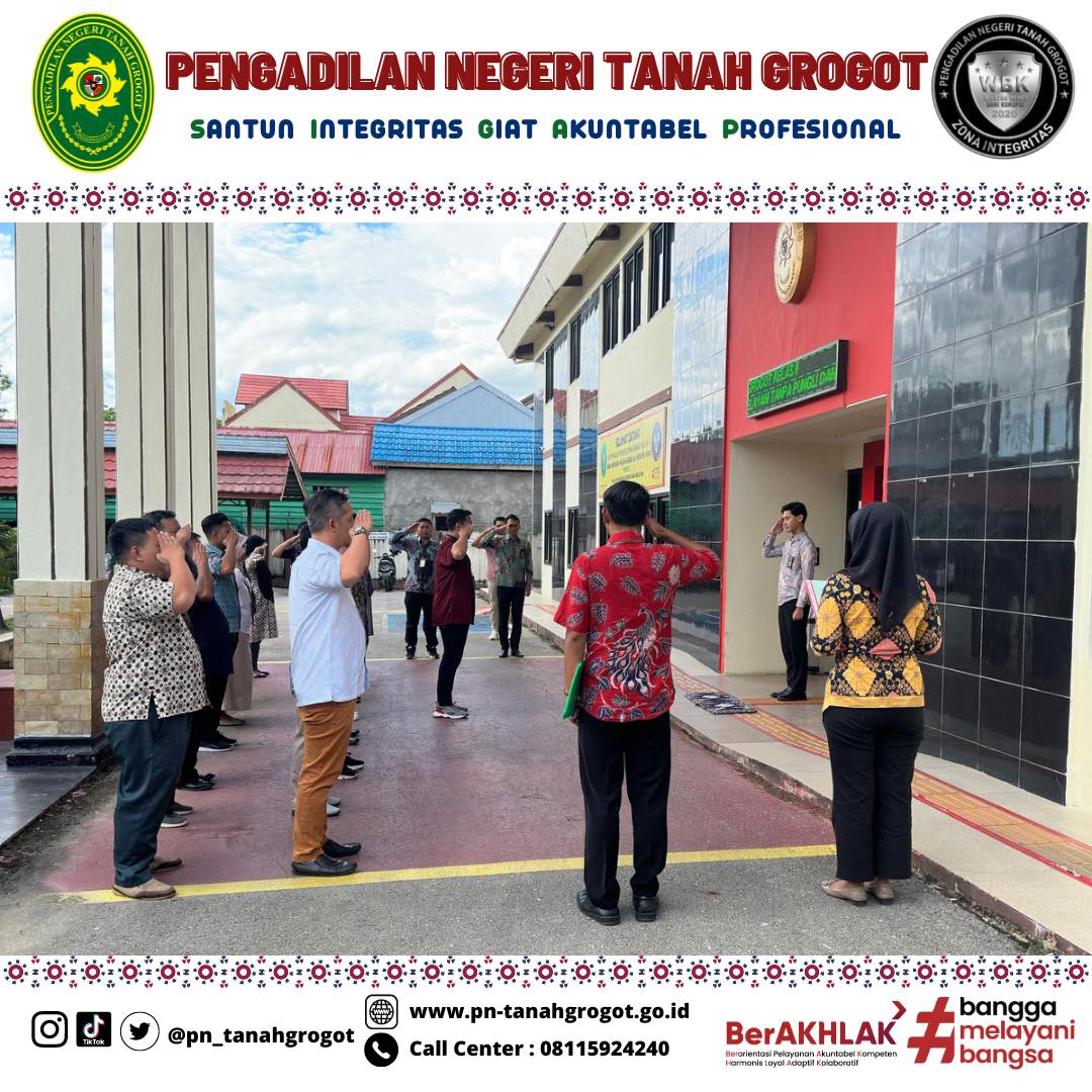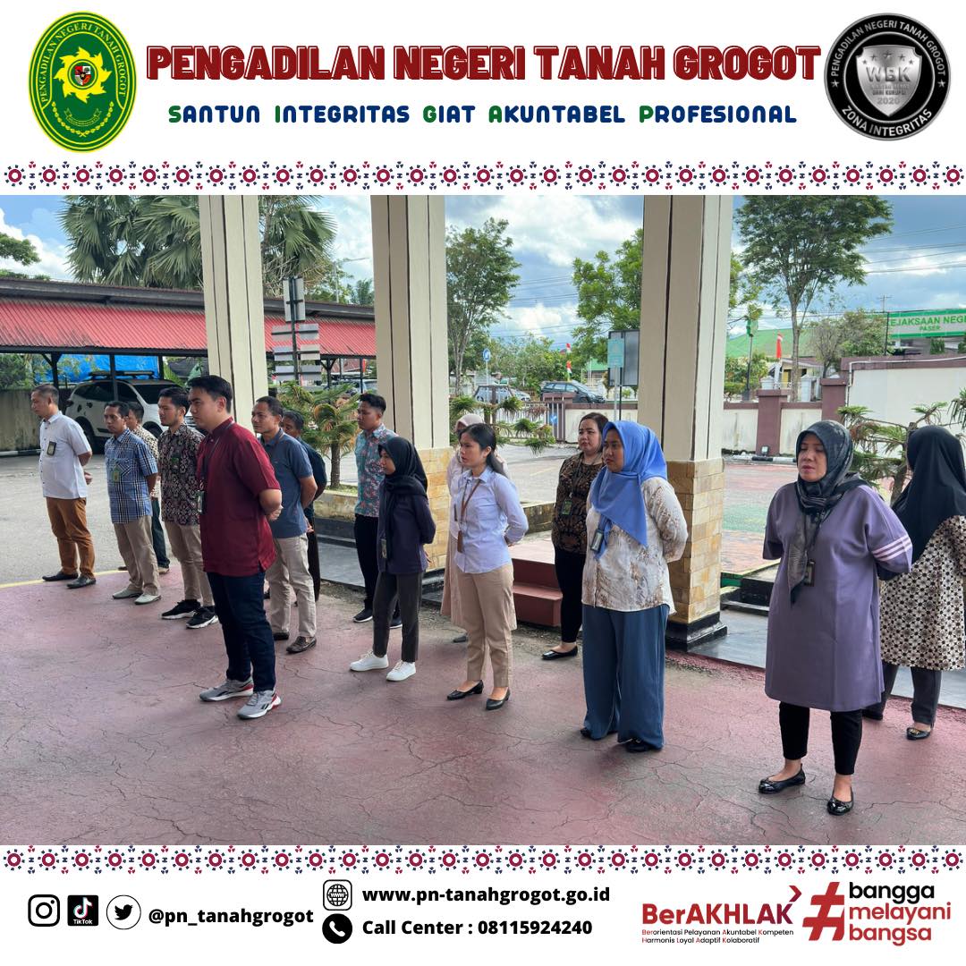 Kegiatan apel jumat sore di Pengadilan Negeri Tanah Grogot, dengan Hakim Pengadilan Negeri Tanah Grogot, Bapak Romi Hardhika, S.H. sebagai pembina apel, dan Klerek – Analis Perkara Peradilan, Bapak Guntur Aris Prabowo, S.H. sebagai pemimpin apel.