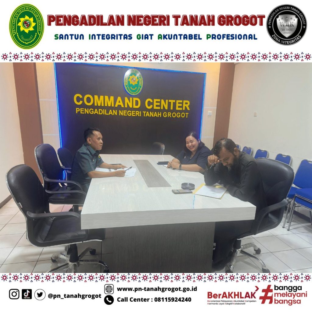Bertempat di Ruang Command Center Pengadilan Negeri Tanah Grogot pukul 10.00 WITA, Pengadilan Negeri Tanah Grogot mengikuti kegiatan Zoom Meeting Monitoring dan Evaluasi Kesekretariatan Wilayah Hukum Pengadilan Tinggi Kalimantan Timur. Kegiatan ini diikuti oleh Para Kasubbag Pengadilan Negeri Tanah Grogot.