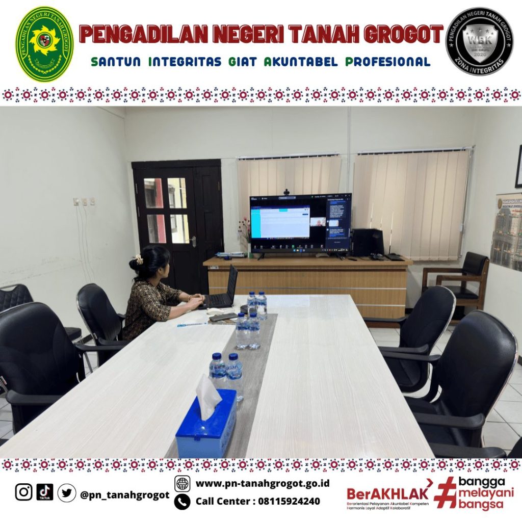 Bertempat di Command Center Pengadilan Negeri Tanah Grogot, Operator BMN Pengadilan Negeri Tanah Grogot, Ibu Arjudus Sada Arihta Angkat, A.Md. mengikuti Pendampingan Pengusulan Rencana Kebutuhan Barang Milik Negara (RKBMN) Tahun Anggaran 2026 Melalui Aplikasi e-Sadewa. Kegiatan ini berlangsung secara daring dan diikuti oleh perwakilan empat badan peradilan di bawah Mahkamah Agung RI, yang diselenggarakan oleh Biro Perencanaan Badan Urusan Administrasi MA-RI.