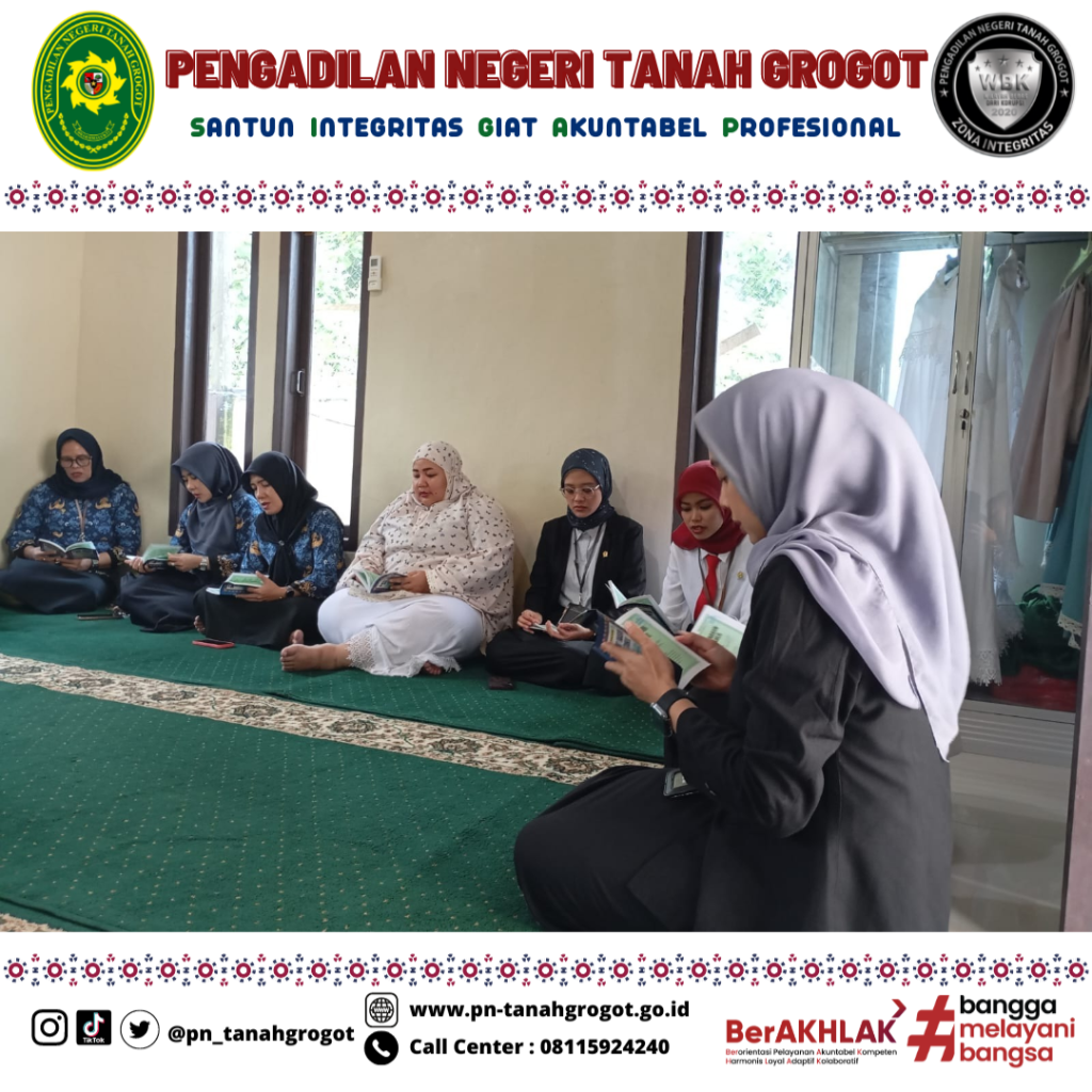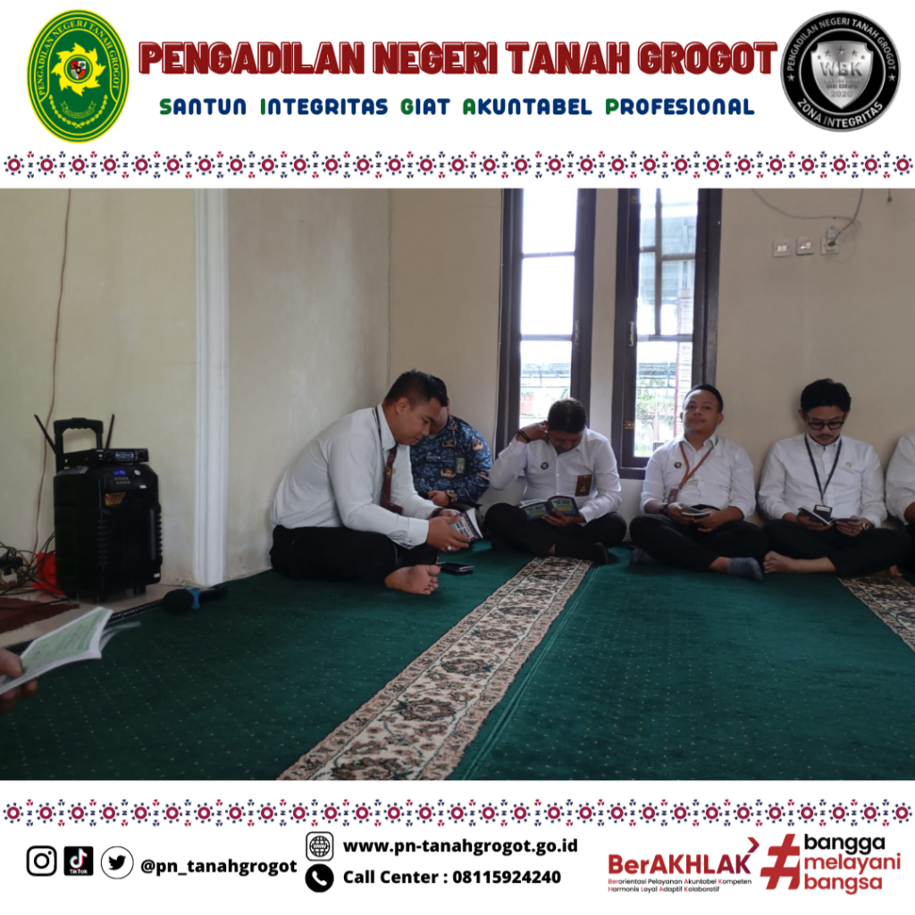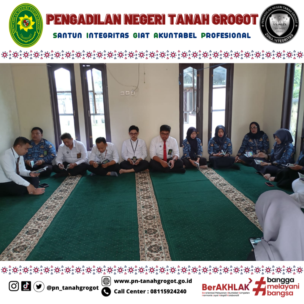 Bertempat di Mushola Al-Hikam Pengadilan Negeri Tanah Grogot pada hari Senin tanggal 10 November 2025 pukul 08.30 WITA telah diadakan acara pengajian bersama. Kegiatan ini diikuti oleh Para Hakim, Karyawan/Karyawati Pengadilan Negeri Tanah Grogot.