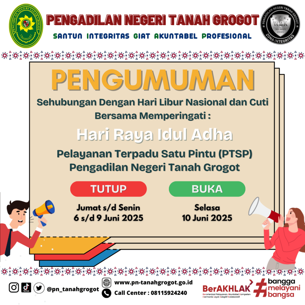 Pengumuman Terkait Pelayanan Pengadilan Negeri Tanah Grogot Pada Hari Raya Idul Adha