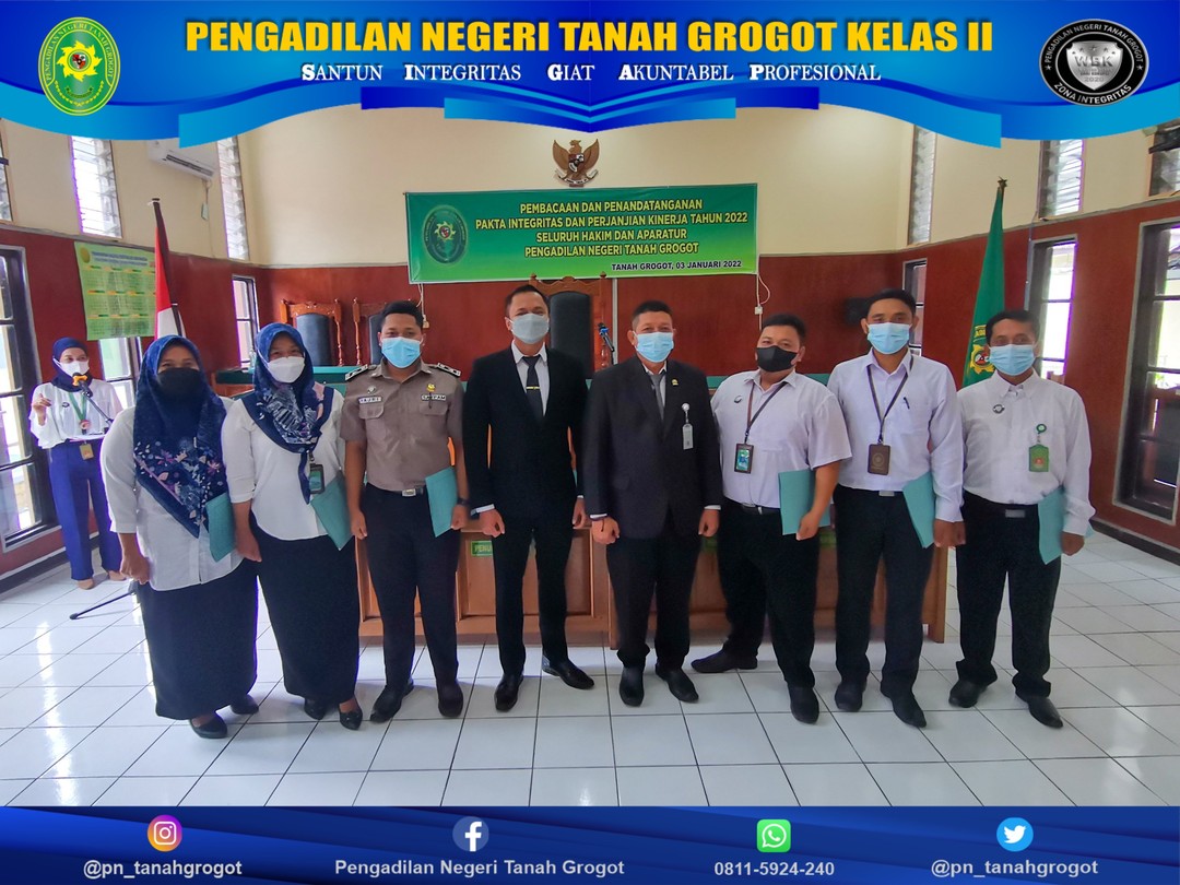 Bertempat di Ruang Sidang Utama Pengadilan Negeri Tanah Grogot Kelas II, telah dilaksanakan penandatanganan dan penyerahan Perjanjian Kinerja Pegawai Pemerintah Non Pegawai Negeri yang dipimpin oleh Ketua PN Tanah Grogot, Bpk. Made Adicandra Purnawan S.H. dan didampingi oleh KPA PN Tanah Grogot, Bpk. Sugianto, S.H.