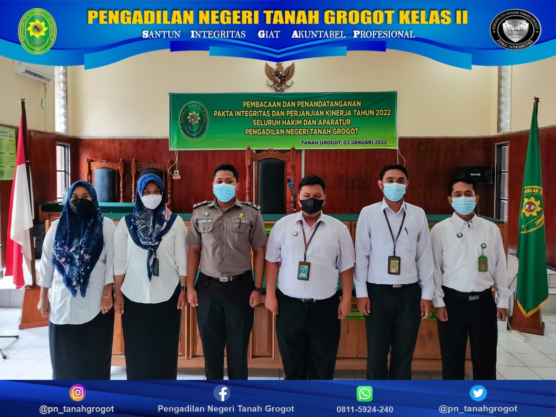Dalam acara tersebut, diserahkan Kontrak Kerja kepada 6 (enam) orang PPNPN di Pengadilan Negeri Tanah Grogot, yang merupakan PPNPN tahun 2021 yang kontraknya diperbaharui berdasarkan hasil evaluasi PPNPN pada bulan Desember tahun 2021.