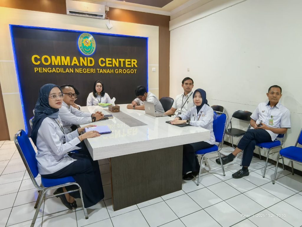 Tanah Grogot – Pada hari Senin tanggal 24 November 2025, Ketua Pengadilan Negeri beserta Hakim dan tenaga teknis pada Pengadilan Negeri Tanah Grogot mengikuti Pertemuan Rutin dan Sarasehan Interaktif Badan Peradilan Umum (Perisai Badilum) Episode ke-11 yang diselenggarakan oleh Direktorat Jenderal Badan Peradilan Umum Mahkamah Agung Republik Indonesia secara daring melalui aplikasi zoom di Ruang Command Center Pengadilan Negeri Tanah Grogot.