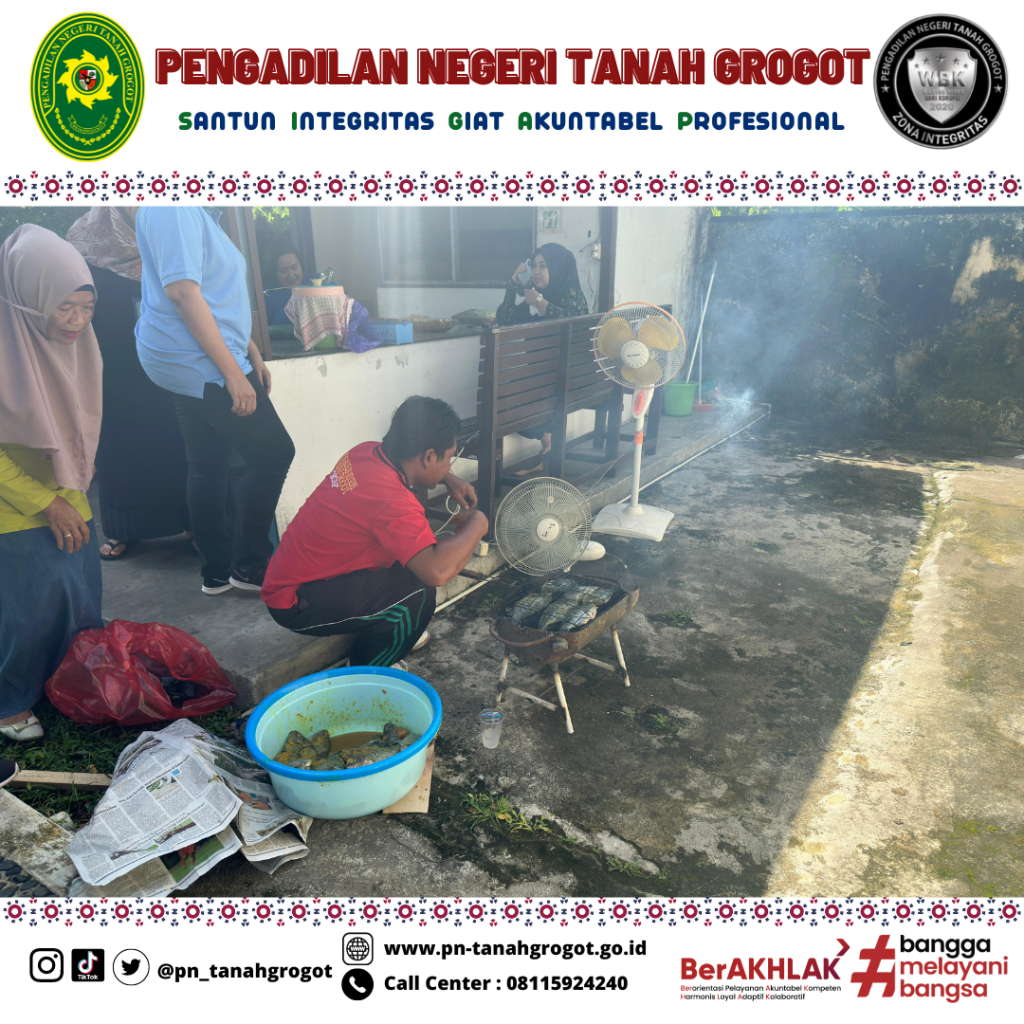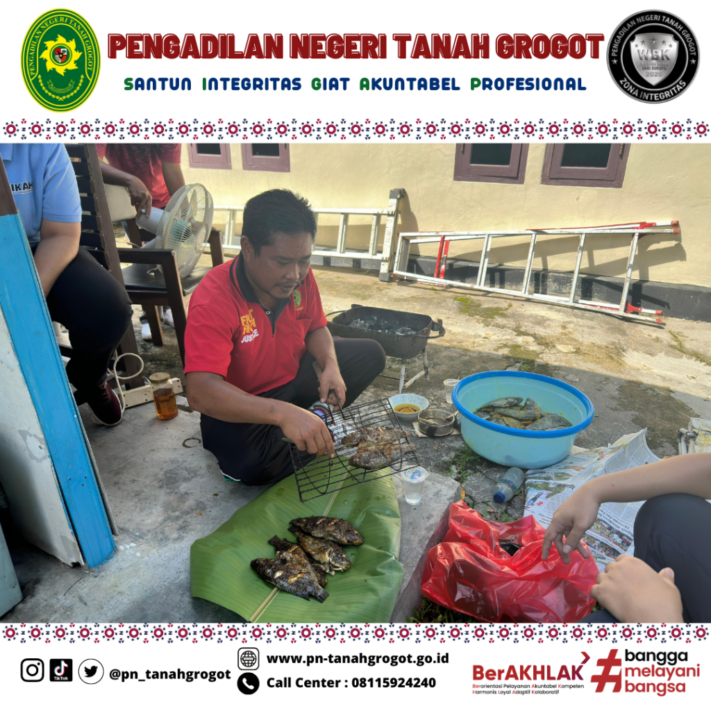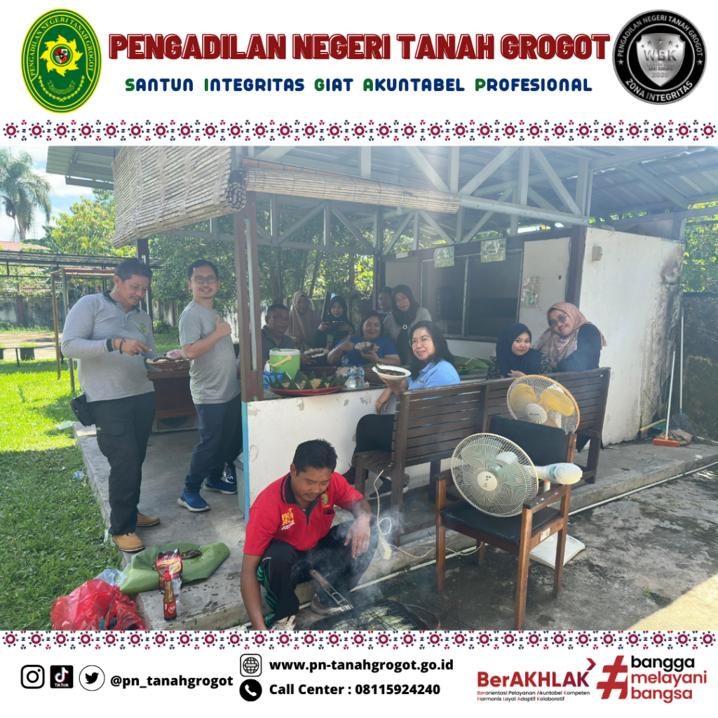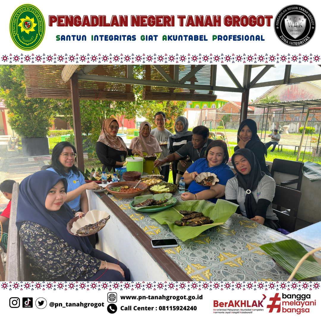 Kemudian acara berlanjut ke acara makan siang bersama. Pertandingan Tenis Meja dan Acara makan siang bersama merupakan pelaksanaan salah satu program yang diusung oleh agen perubahan Pengadilan Negeri Tanah Grogot Periode Januari – Juni 2024, Ibu Nur Aenah Maghvira.