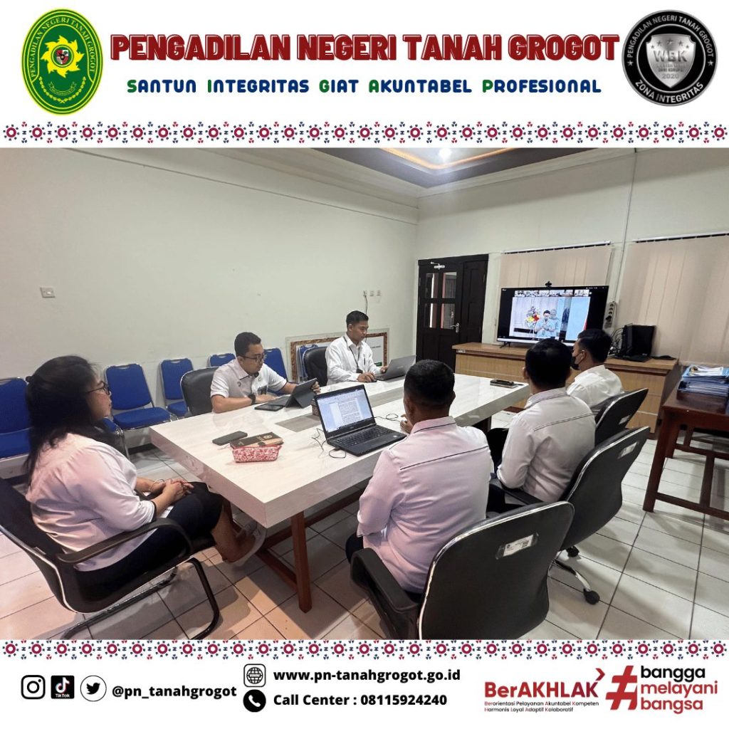 Pada hari Senin tanggal 20 Januari 2025 pukul 10.00 WITA bertempat di Command Center Pengadilan Negeri Tanah Grogot, Ketua, Wakil Ketua dan Para Hakim Pengadilan Negeri tanah Grogot telah mengikuti Pertemuan Rutin dan Sarasehan Interaktif Badan Peradilan Umum (Perisai Badilum) Episode 3 Tahun 2025 secara daring.