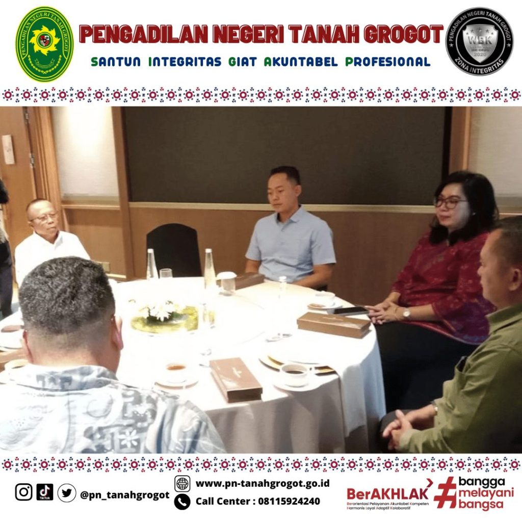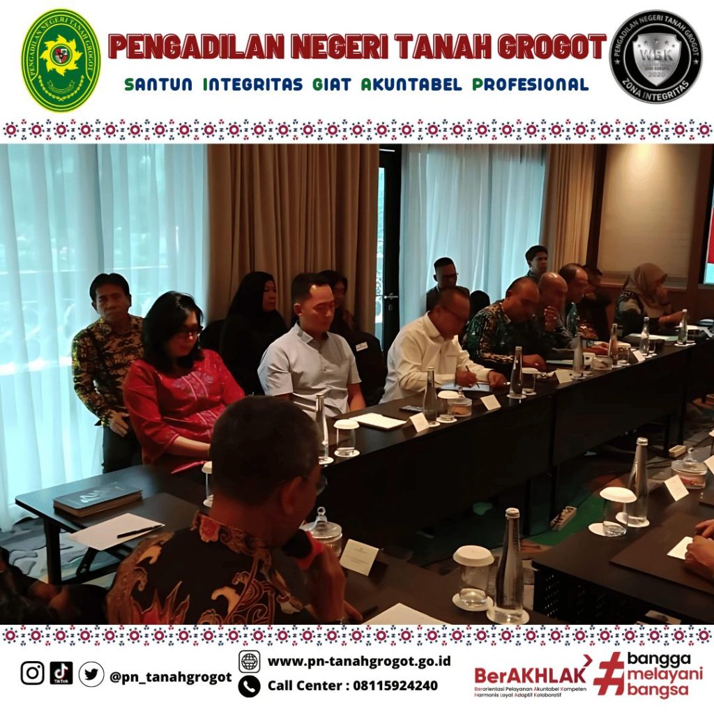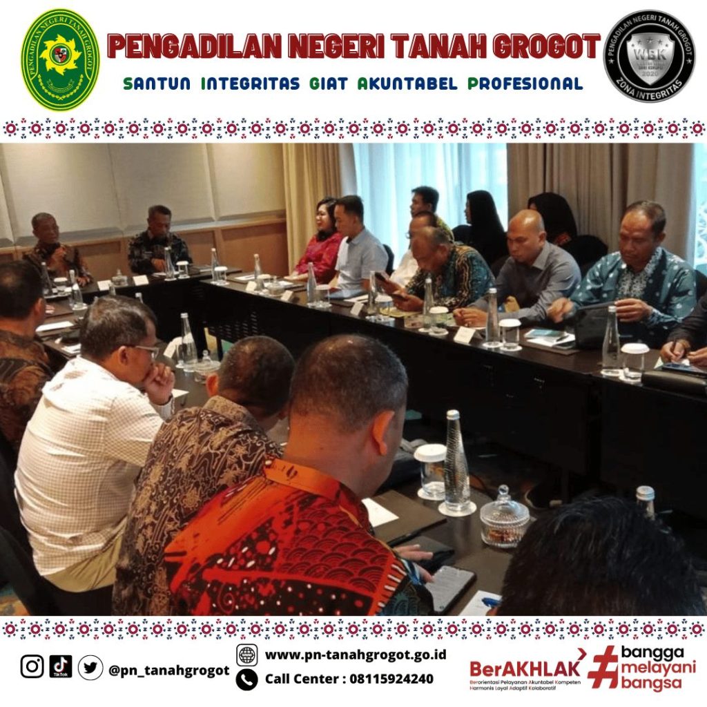 Pada hari Minggu tanggal 20 Oktober 2024 pukul 08.00 WIB bertempat di Hotel Royal Ambarukmo Yogyakarta, Ketua Pengadilan Negeri Tanah Grogot Ibu Ari Listyawati, S.H., M.H. menghadiri Kegiatan Rapat Koordinasi Forum Koordinasi Pimpinan Daerah (FORKOPIMDA) Kabupaten Paser dalam rangka Sinergi Menciptakan Kondusifitas Daerah untuk Mewujudkan Pilkada Tahun 2024 berjalan Aman, Lancar dan Tentram yang diselenggarakan oleh Pemerintah Daerah Kabupaten Paser melalui Badan kesatuan Bangsa dan Politik.