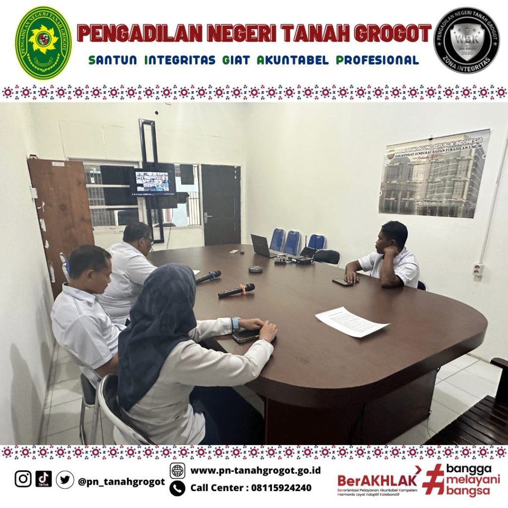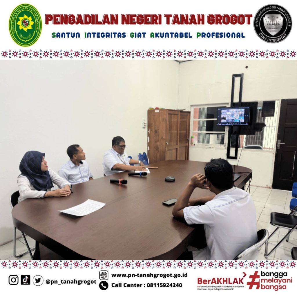 Senin, 05 Agustus 2024 Biro Keuangan Mahkamah Agung RI mengadakan rapat koordinasi secara daring melalui aplikasi Zoom Meeting. Rapat koordinasi ini diikuti oleh Pengadilan Tingkat Banding dan Pengadilan Tingkat Pertama di empat lingkungan peradilan seluruh Indonesia. Bertempat di ruang Media Center Pengadilan Tanah Grogot, Bapak Khalid, S.H., Panitera Pengadilan Negeri Tanah Grogot, Ibu Emma Yuanita, S.H., Kasir Pengadilan Negeri Tanah Grogot, dan Bapak Agus Muhari, Bendahara Penerimaan Pengadilan Negeri Tanah Grogot turut menghadiri rapat.