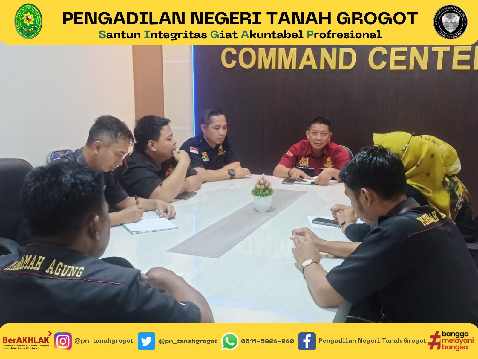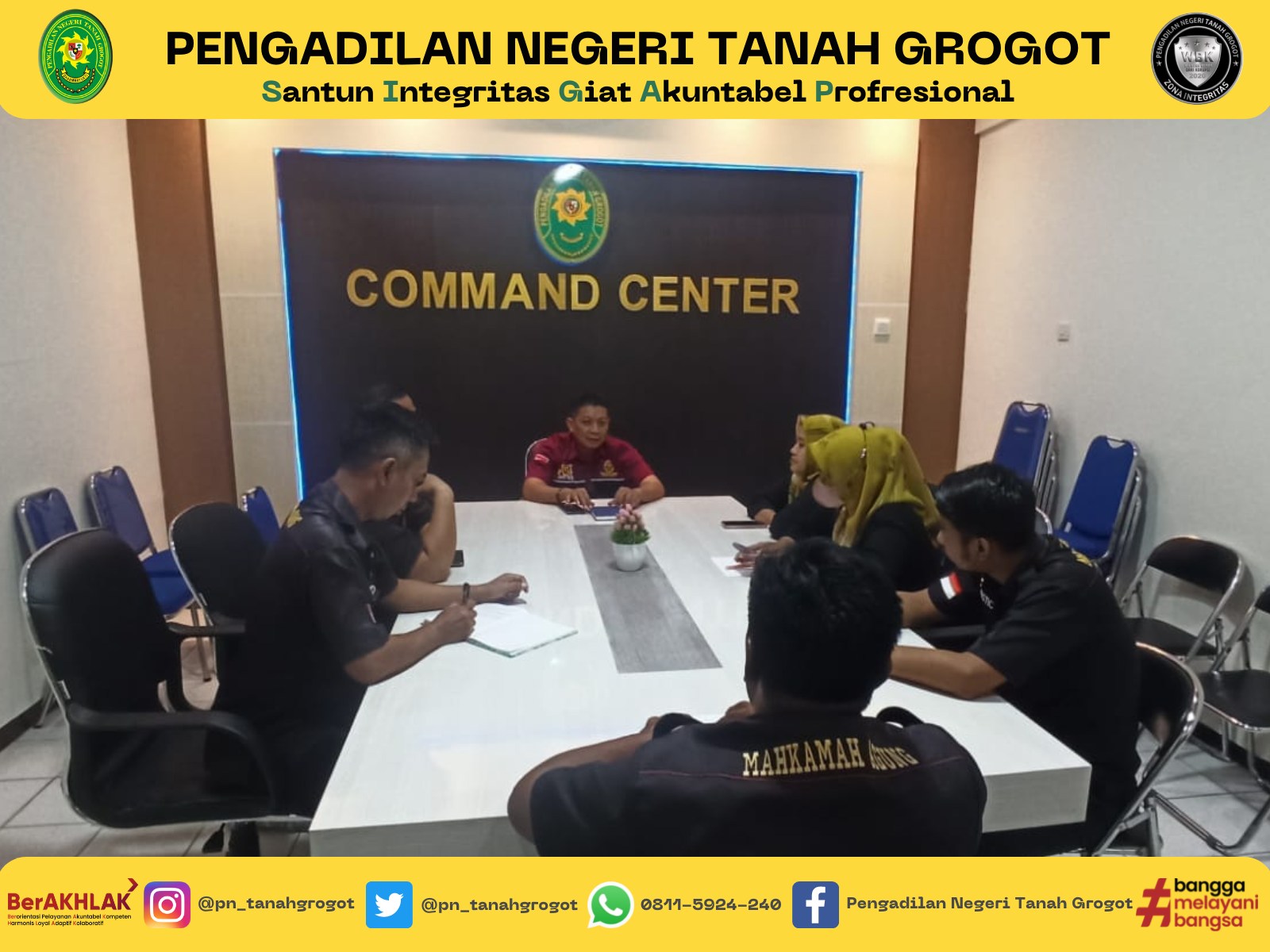 Pada hari Rabu tanggal 8 Juni 2022 bertempat di Ruang Command Center Pengadilan Negeri Tanah Grogot, telah dilaksanakan Rapat Monitoring dan Evaluasi Kinerja PPNPN oleh Sekretaris Pengadilan Negeri Tanah Grogot, Bpk. Sugianto, S.H. Rapat tersebut dihadiri oleh Kasubbag Umum dan Keuangan, Bpk. Muhyidin, S.H. dan seluruh PPNPN Pengadilan Negeri Tanah Grogot.