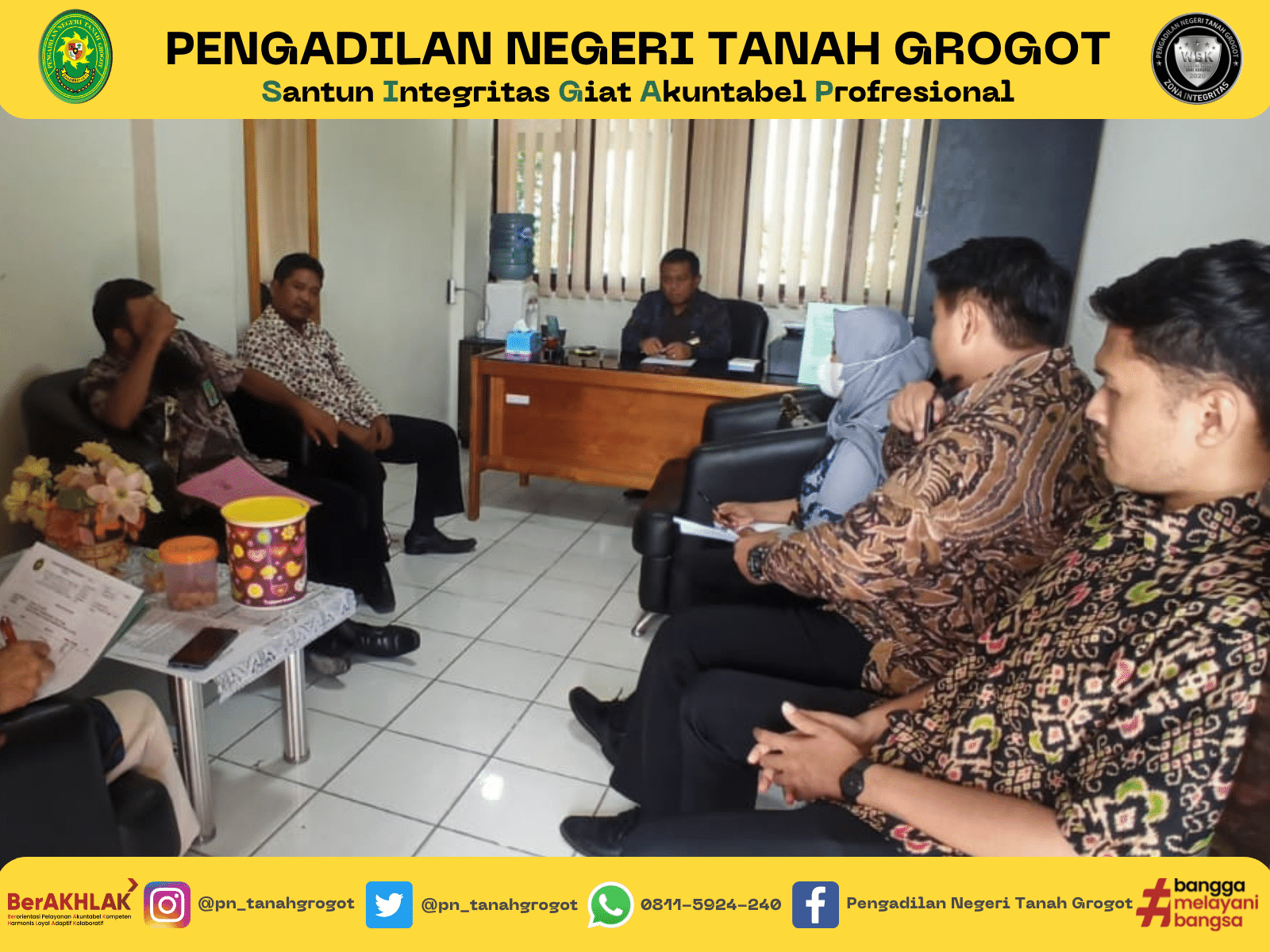 Panitera Pengadilan Negeri Tanah Grogot, Bpk. Anung Handono S.H., memimpin Rapat Evaluasi Kepaniteraan di Ruang Rapat Pengadilan Negeri Tanah Grogot. Rapat tersebut dihadiri oleh seluruh jajaran kepaniteraan Pengadilan Negeri Tanah Grogot.