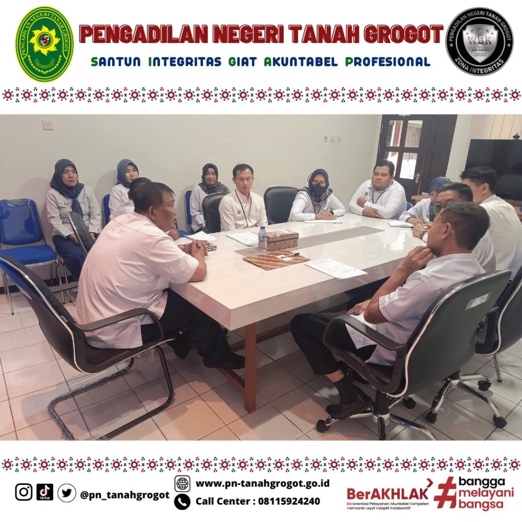 Pada hari Senin tanggal 19 Mei 2025 pukul 09.00 WITA Panitera Pengadilan Negeri Tanah Grogot mengadakan rapat monitoring dan evaluasi Kepaniteraan.