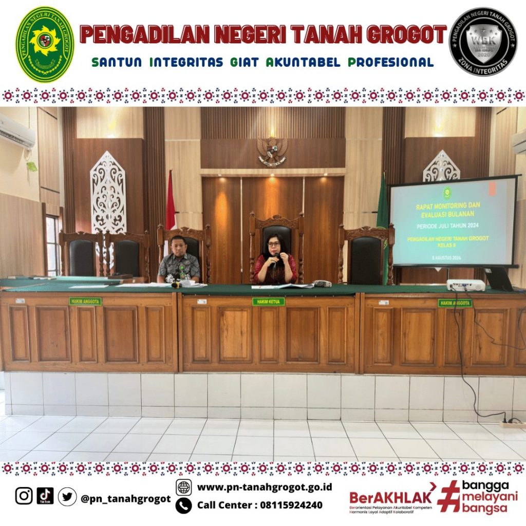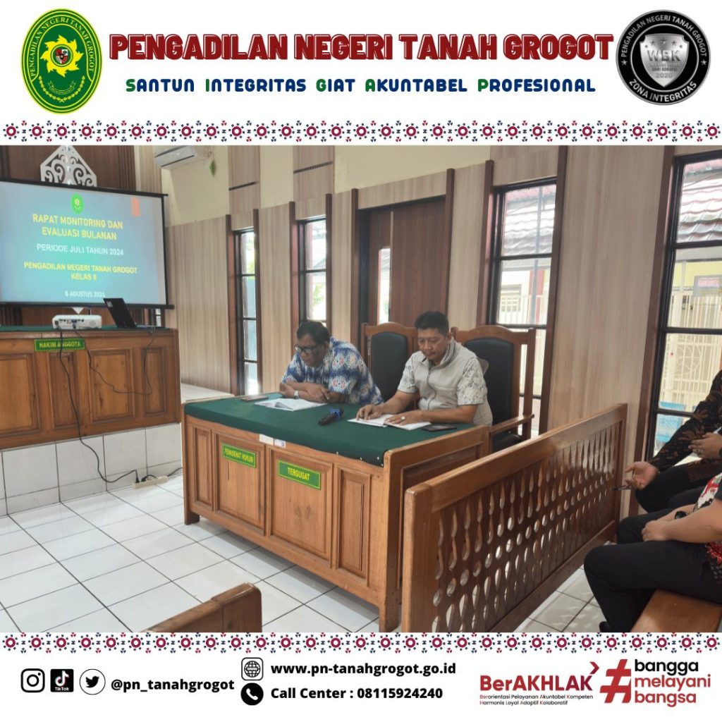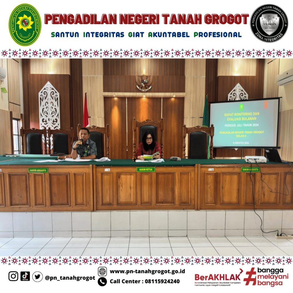 Rapat Monitoring dan Evaluasi Pengadilan Negeri Tanah Grogot Periode Juli 2024
