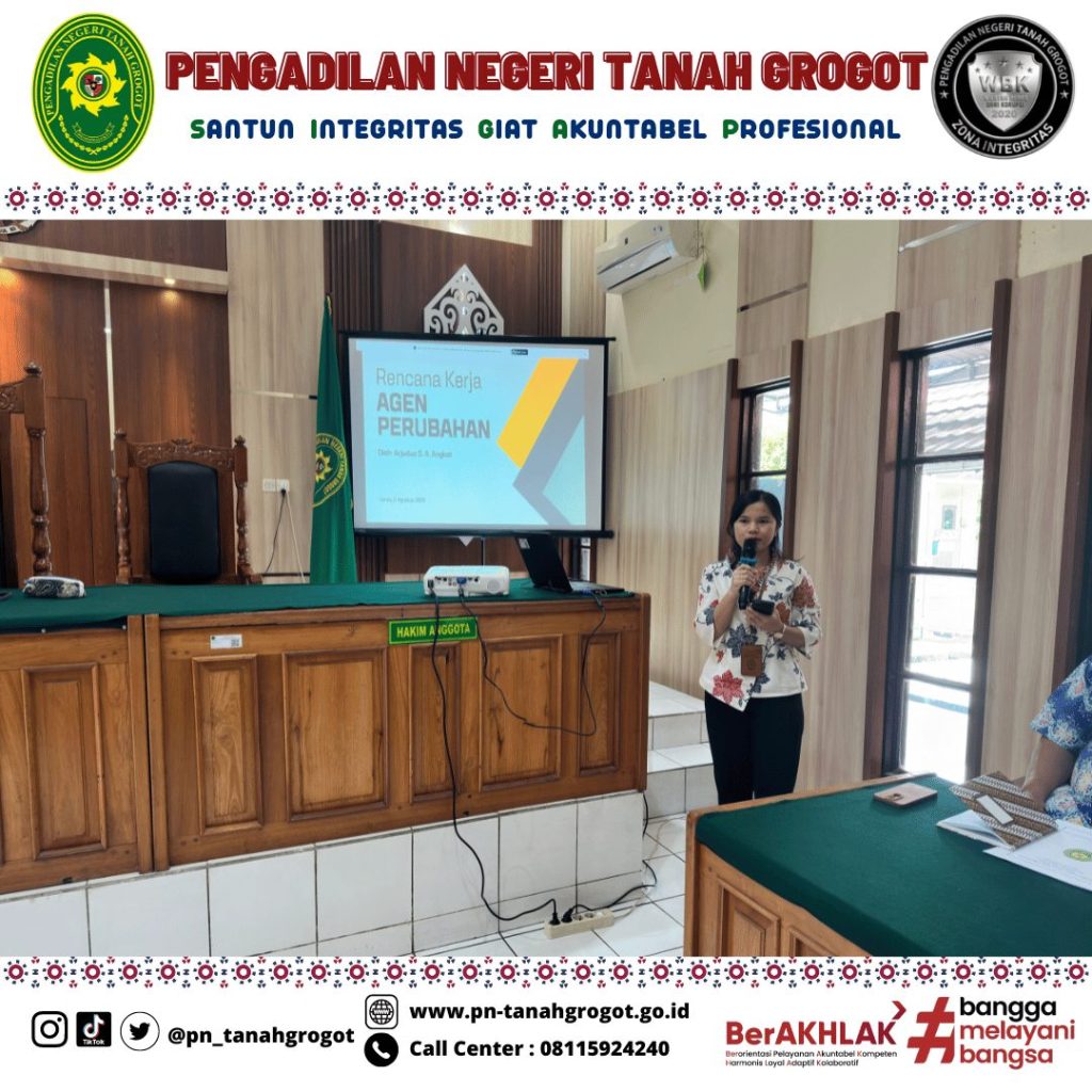 Kemudian acara dilanjutkan ke pemaparan program agen perubahan periode juli – desember 2024 oleh Agen Perubahan, Ibu Arjudus Sada Arihta Angkat, S.E.
