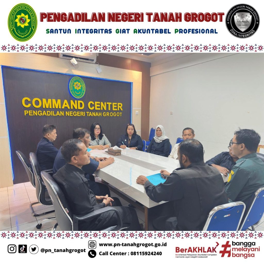 Bertempat di Ruang Command Center Pengadilan Negeri Tanah Grogot dilaksanakan rapat Penyusunan Review IKU dan Renstra Pengadilan Negeri Tanah Grogot. Acara tersebut dipimpin oleh Ketua Pengadilan Negeri Tanah Grogot Ibu Ari Listyawati, S.H., M.H. dan didampingi oleh Panitera serta Sekretaris Pengadilan Negeri Tanah Grogot. Acara ini dihadiri oleh Para Panitera Muda dan Kasubbag Pengadilan Negeri Tanah Grogot.
