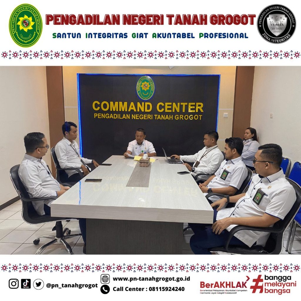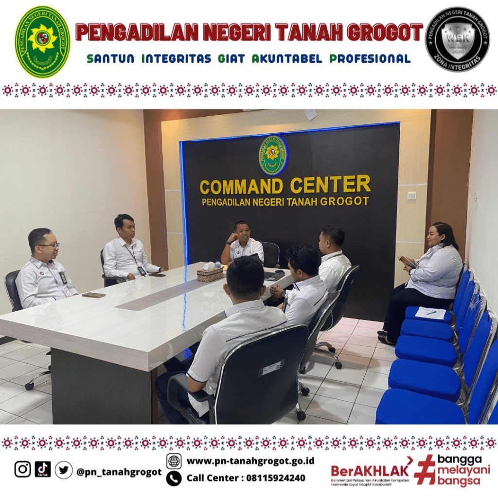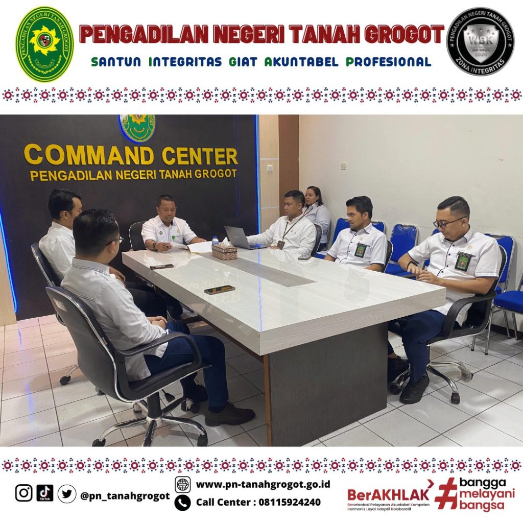 Rapat dilaksanakan di ruang Command Center dan diikuti oleh Para Koordinator Zona Integritas Pengadilan Negeri Tanah Grogot.