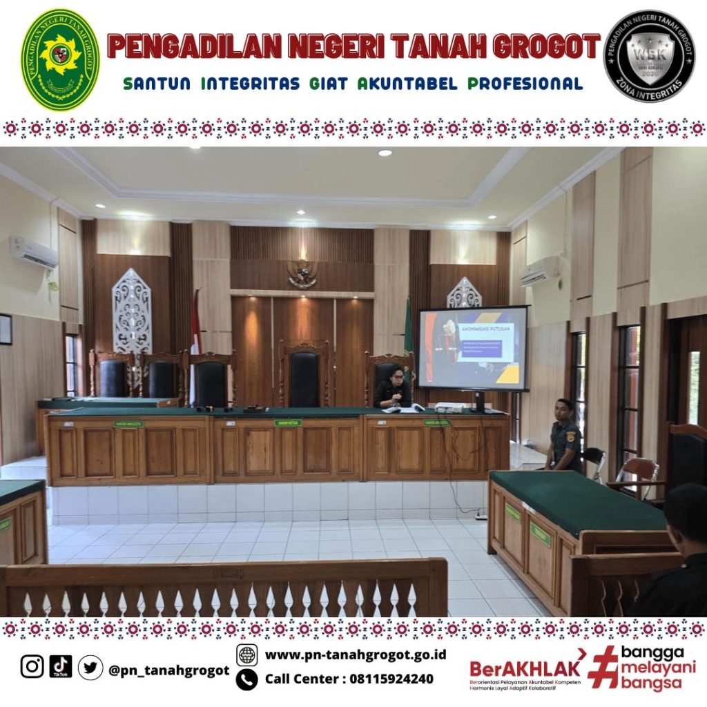 Pada hari Selasa tanggal 10 September 2024 bertempat di Ruang Sidang Utama Pengadilan Negeri Tanah Grogot telah diadakan Sosialisasi Anonimisasi Putusan sebagaimana yang dimaksud dalam SK KMA Nomor : 2-144/KMA/SK/VIII/2022 tentang Standar Pelayanan Informasi Publik di Pengadilan.