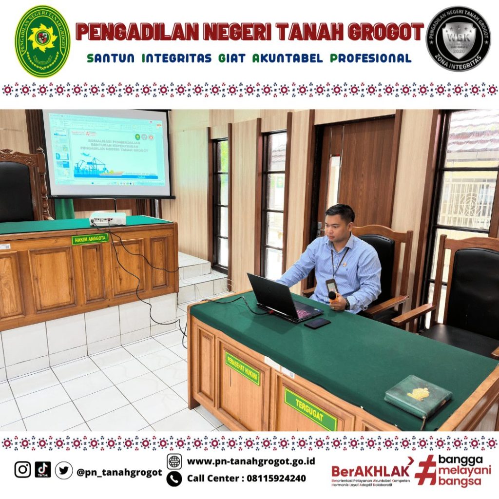 Dalam kesempatan tersebut pemaparan materi sosialisasi telah disampaikan oleh Hakim Pengadilan Negeri Tanah Grogot Bpk. Brillian Hadi Wahyu Pratama, S.H., M.H. dan sosialisasi diikuti oleh seluruh ASN dan PPNPN Pengadilan Negeri Tanah Grogot.