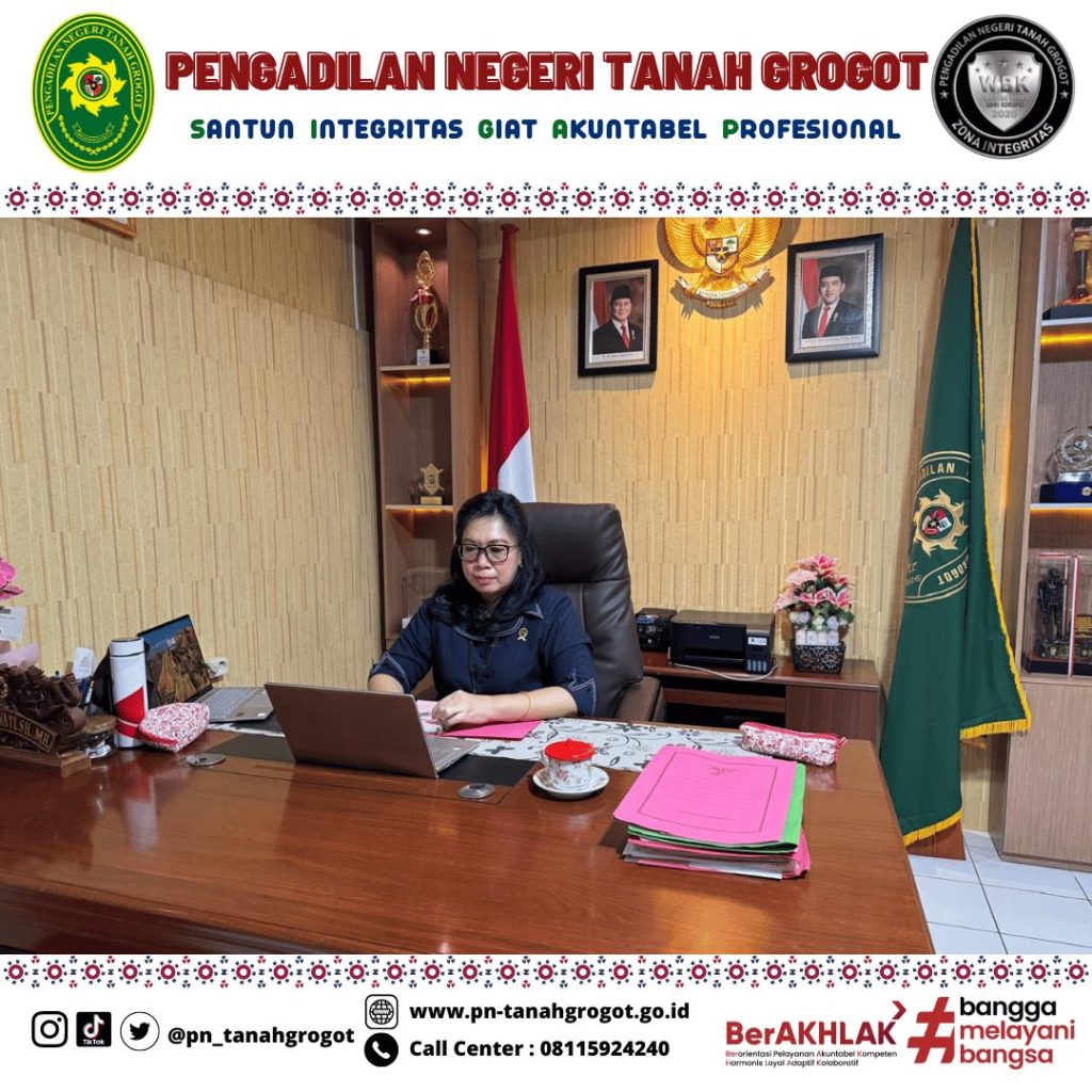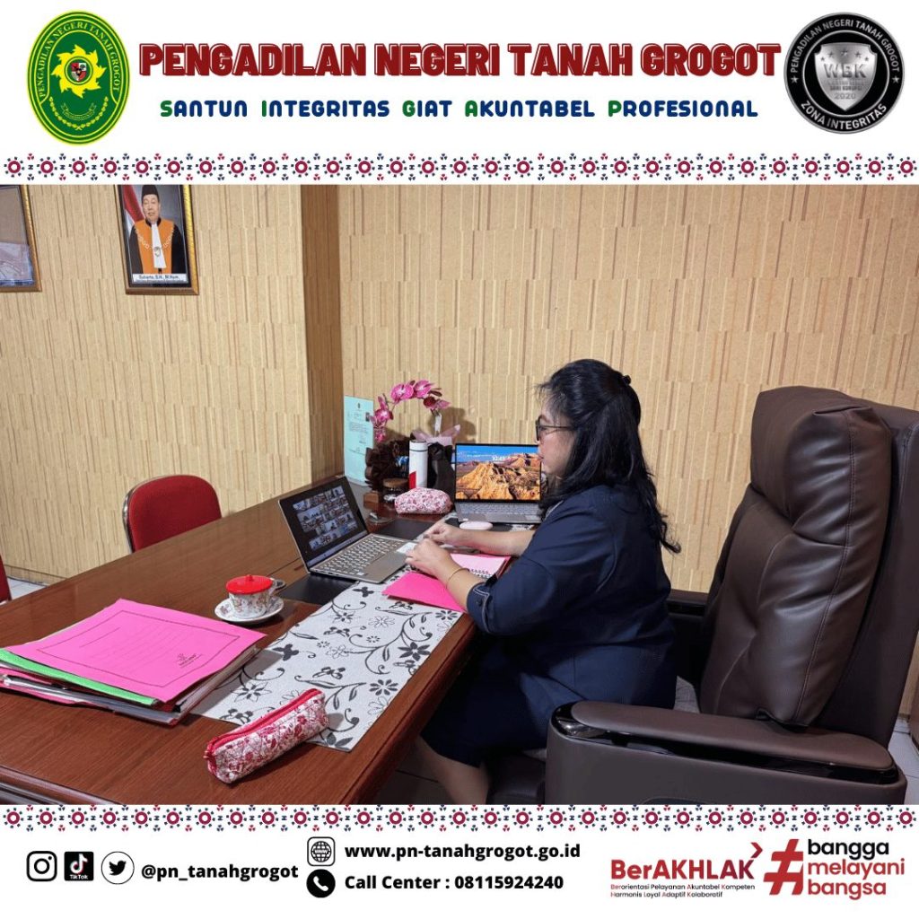 Sehubungan dengan dilaksanakannya Pelatihan Dasar Mahkamah Agung Kerjasama Balai Diklat Keagamaan Banjarmasin maka pada hari Selasa tanggal 21 Januari 2025 Pukul 10.30 WITA Ketua Pengadilan Negeri Tanah Grogot Ibu Ari Listyawati, S.H., M.H. sebagai Mentor Peserta Latsar mengikuti sosialisasi secara daring di Ruang Command Center Pengadilan negeri Tanah Grogot.