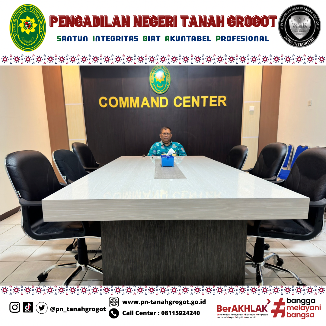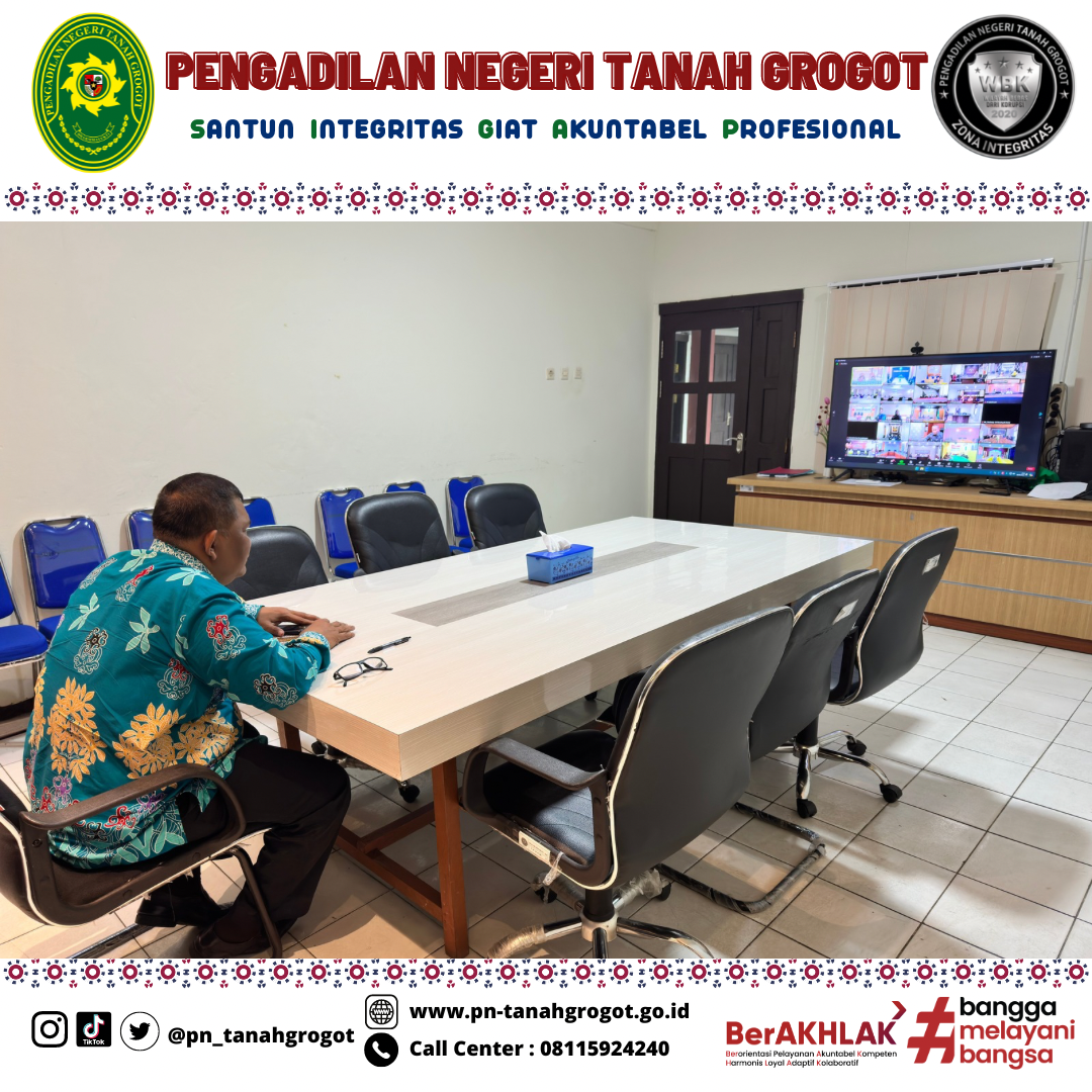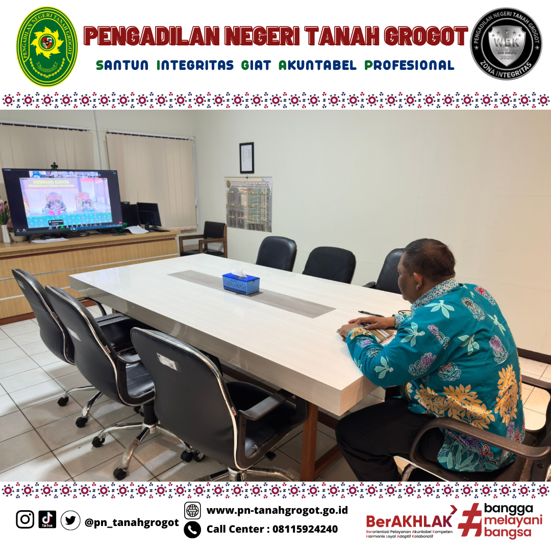 Bertempat di ruang command center Pengadilan Negeri Tanah Grogot, Panitera Pengadilan Negeri Tanah Grogot, Bapak Khalid, S.H. menghadiri Kegiatan Sosialisasi Layanan Administrasi Kepegawaian Kepaniteraan yang diselenggarakan oleh Direktorat Pembinaan Teknis Peradilan Umum secara daring melalui zoom. Sosialisasi ini berkaitan dengan Promosi/Mutasi, Kenaikan Pangkat, Persetujuan Pengangkatan JSP, Pencantuman Gelar, Pensiun, dan Izin Keluar Negeri.
