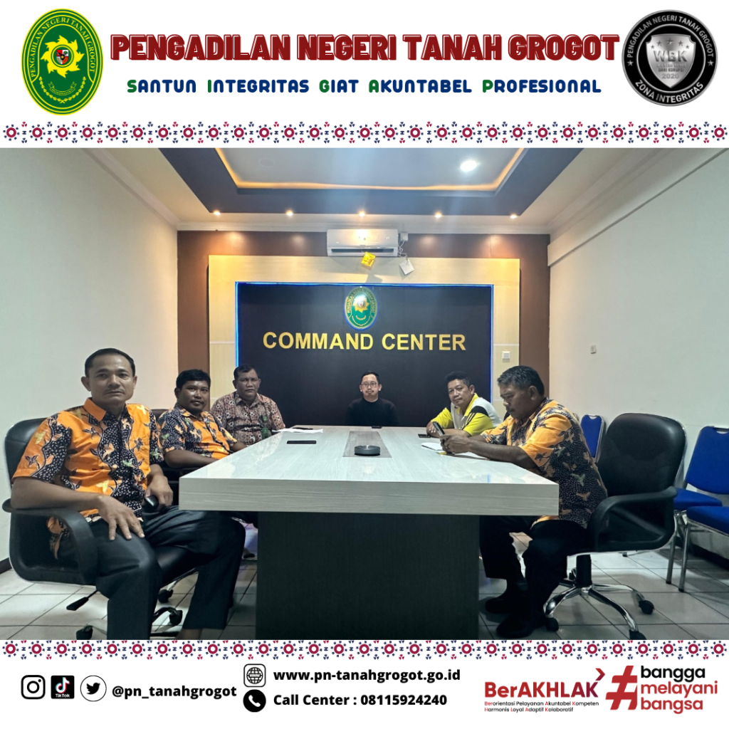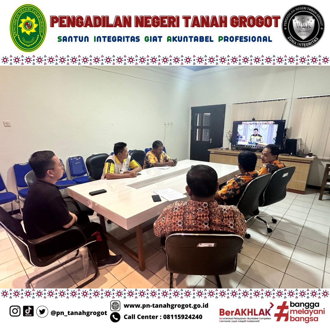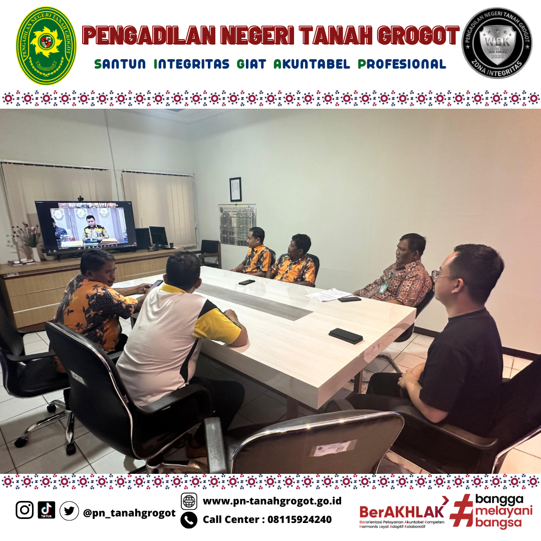 Bertempat di ruangan Command Center Pengadilan Negeri Tanah Grogot, Plh. Ketua, Panitera, Sekretaris, Panitera Muda Perdata, Panitera Muda Pidana, dan Juru Sita Pengganti Pengadilan Negeri Tanah Grogot mengikuti sosialisasi nasional Pengajuan Upaya Hukum Kasasi/PK secara Elektronik oleh Pimpinan Mahkamah Agung secara daring melalui aplikasi Zoom. Dalam kegiatan tersebut, Panitera Mahkamah Agung menyampaikan bahwa kedepannya, berkas permohonan kasasi maupun peninjauan kembali(PK) untuk bundel A dan bundel B akan dikirimkan secara elektronik dan berkas perkara cetak (manual) tidak lagi dikirimkan ke Mahkamah Agung dalam rangka mempercepat proses pengiriman berkas dan juga penghematan anggaran. Pengiriman berkas permohonan kasasi/peninjauan kembali (PK) sebagaimana yang dimaksud sebelumnya akan dikirim melalui aplikasi Sistem Informasi Pengelolaan Perkara (SIPP) versi 5.5.0