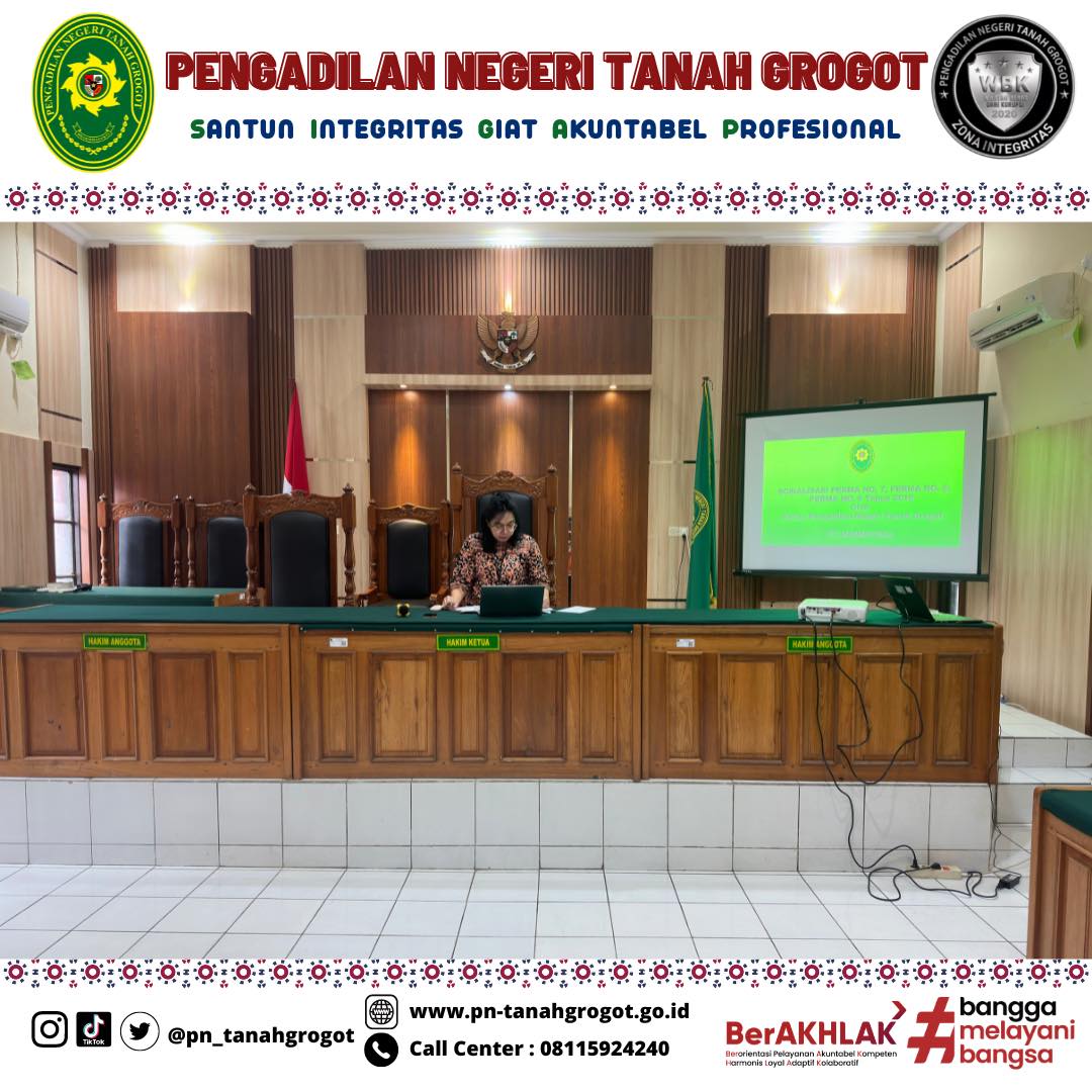 Bertempat di Ruang Sidang Utama Pengadilan Negeri Tanah Grogot telah dilaksanakan sosialisasi PERMA No. 7, 8, dan 9 Tahun 2016 oleh Ketua Pengadilan Negeri Tanah Grogot, Ibu Ari Listyawati, S.H., M.H. Ketua Pengadilan Negeri Tanah Grogot menekankan bahwa sosialisasi ini penting untuk dilakukan agar tetap dapat memastikan komitmen dan kepatuhan jajaran di lingkungan Pengadilan Negeri Tanah Grogot terhadap PERMA No. 7, 8, dan 9 Tahun 2016 dan konsekuensi pelanggarannya.