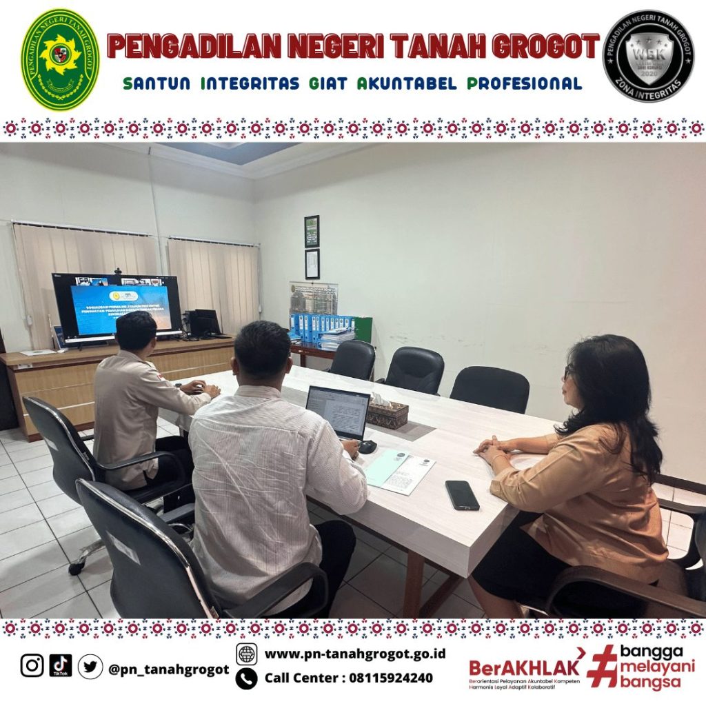 Bertempat di Ruang Command Center Pengadilan Negeri Tanah Grogot, Ketua Pengadilan Negeri Tanah Grogot, Ibu Ari Listyawati, S.H., M.H. beserta dengan Para Hakim Pengadilan Negeri Tanah Grogot mengikuti Sosialisasi PERMA Nomor 1 Tahun 2022 tentang Tata Cara Penyelesaian Permohonan dan Pemberian Restitusi dan Kompensasi kepada Korban Tindak Pidana, yang diselenggarakan oleh Mahkamah Agung Republik Indonesia secara daring.