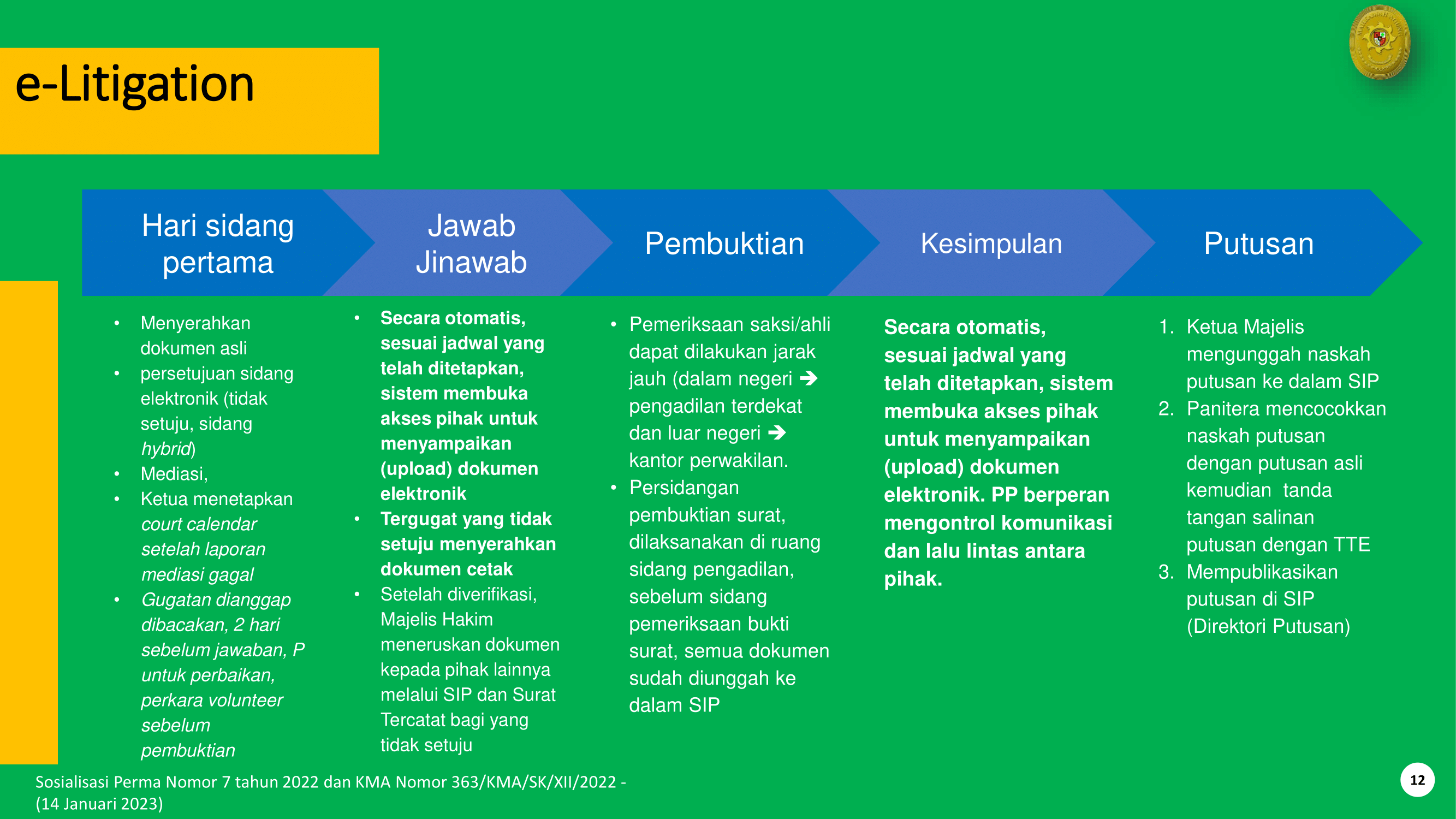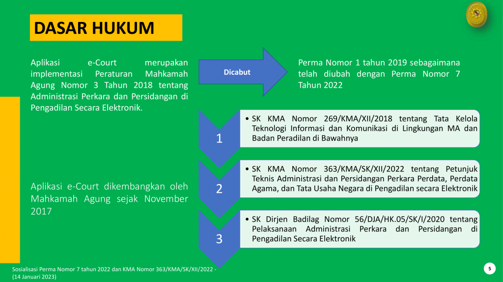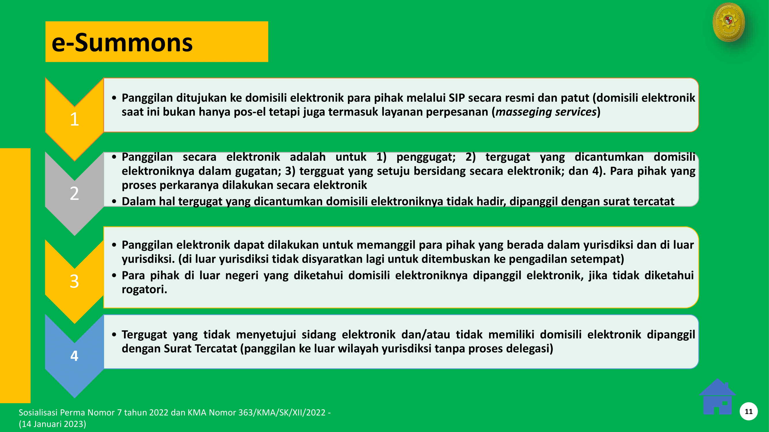 Pokok-pokok perubahan dalam Perma Nomor 7 Tahun 2022 tentang Perubahan Atas Perma Nomor 1 Tahun 2019 tentang Administrasi Perkara dan Persidangan di Pengadilan Secara Elektronik: