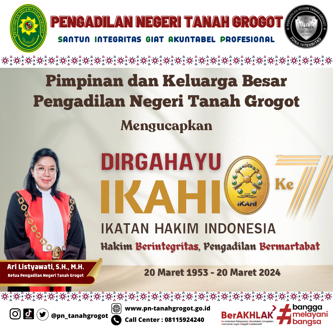Ucapan Dirgahayu Ikatan Hakim Indonesia (IKAHI) Ke 71