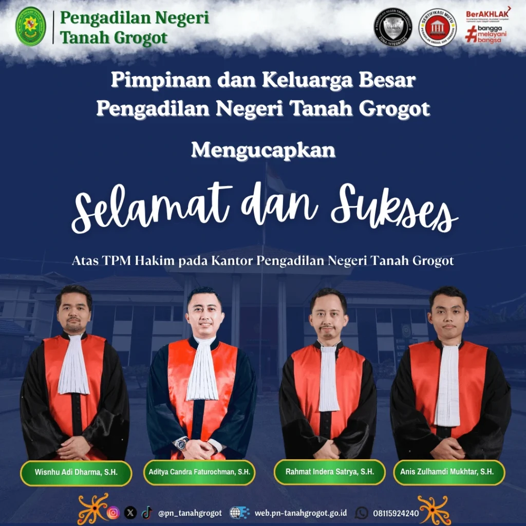 Selamat dan Sukses Atas TPM Hakim Pada Kantor Pengadilan Negeri Tanah Grogot