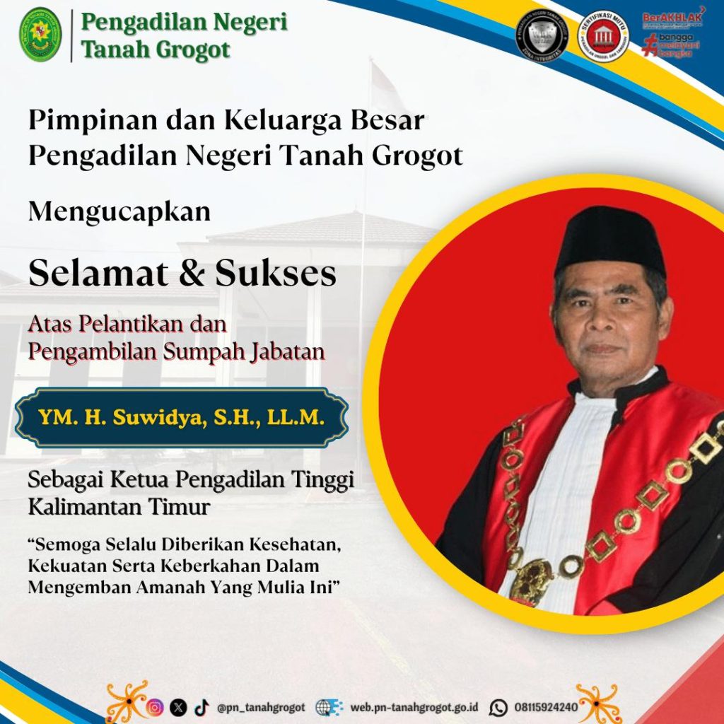 Ucapan Selamat Atas Pelantikan dan Pengambilan Sumpah Jabatan Ketua Pengadilan Tinggi Kalimantan Timur