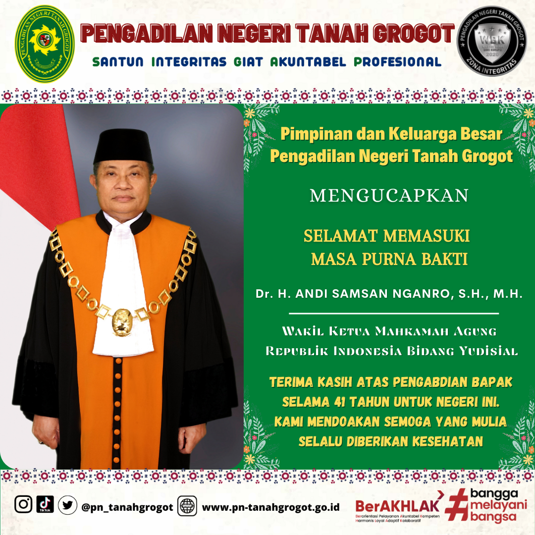 Ucapan Selamat Purna Bakti Wakil Ketua Mahkamah Agung Republik Indonesia Bidang Yudisial