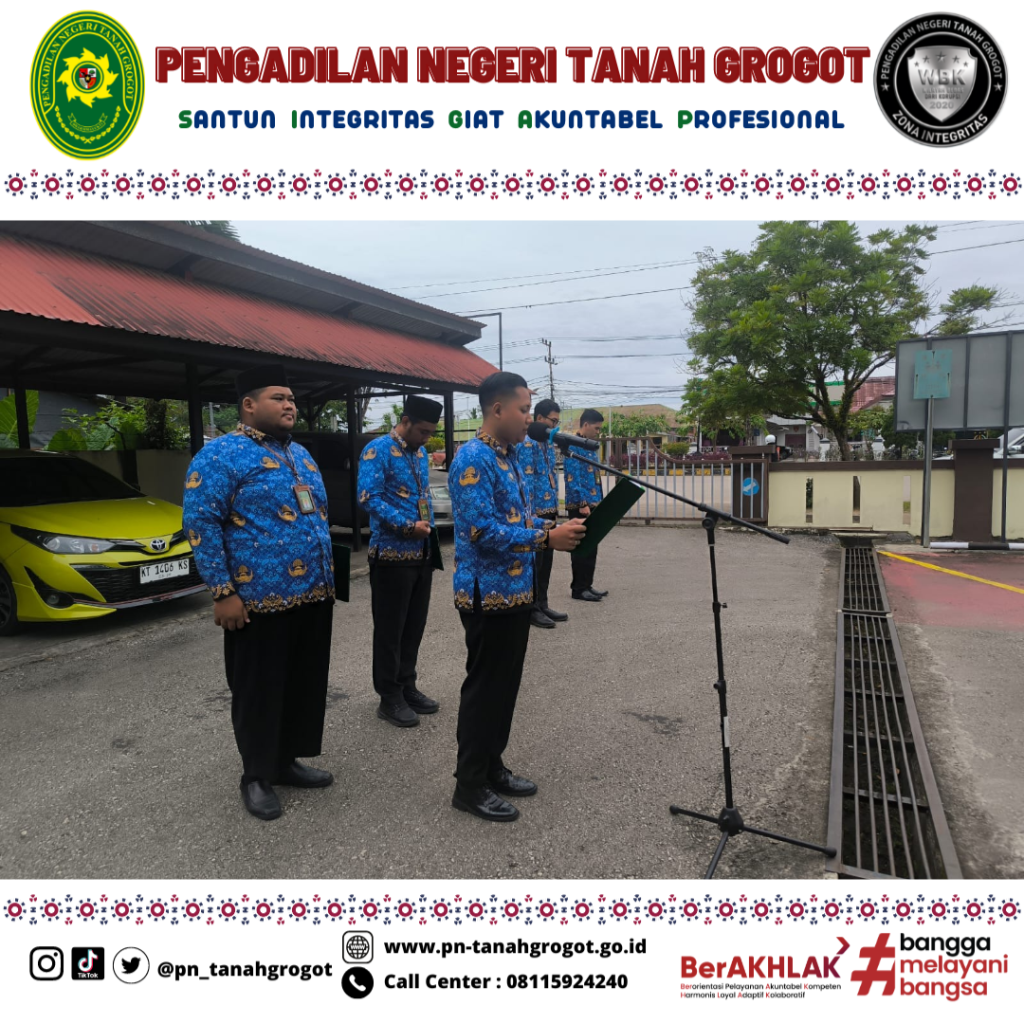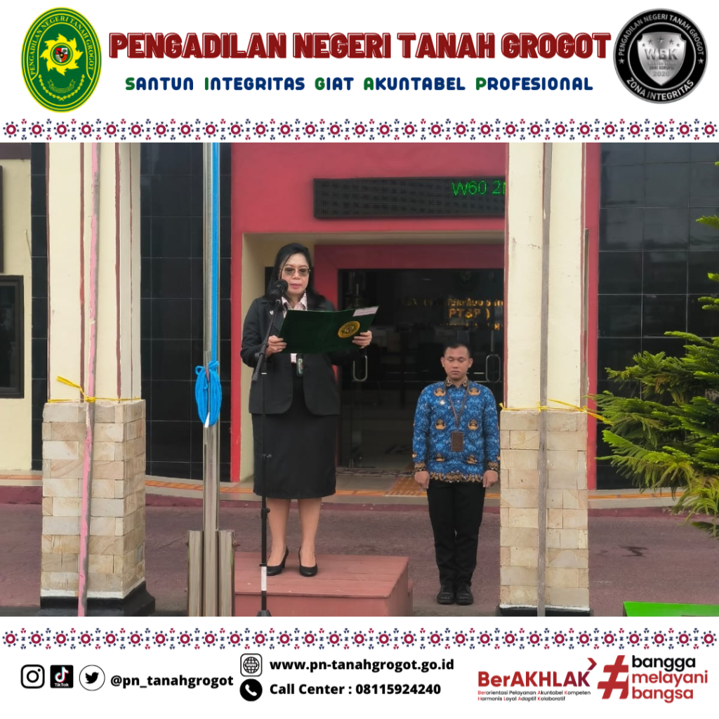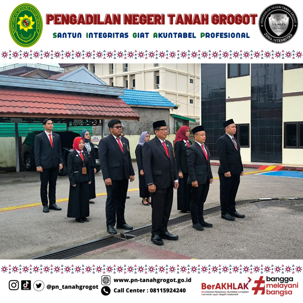 Pada hari Senin tanggal 10 November 2025 pukul 08.00 WITA Pengadilan Negeri Tanah Grogot menyelenggarakan Upacara Bendera dalam rangka Peringatan Hari Pahlawan di halaman Kantor Pengadilan Negeri Tanah Grogot. Adapun tema Hari Pahlawan Tahun 2025 adalah “Pahlawanku Teladanku Terus Bergerak Melanjutkan Perjuangan” dan susunan acaranya antara lain Pengibaran Bendera Merah Putih diiringi lagu Kebangsaan Indonesia Raya, Mengheningkan Cipta, Pembacaan Teks Pancasila, Pembacaan Teks Pembukaan Undang-Undang Dasar Negara Kesatuan Republik Indonesia Tahun 1945, Pembacaan Pesan-Pesan Perjuangan Pahlawan Nasional, Pembacaan Doa dan diakhiri dengan Foto Bersama. Dalam pelaksanaan upacara tersebut dipimpin oleh Ketua Pengadilan Negeri Tanah Grogot Ibu Ari Listyawati, S.H., M.H. dengan peserta upacara terdiri dari seluruh Hakim dan Aparatur Sipil Negara (ASN) Pengadilan Negeri Tanah Grogot.